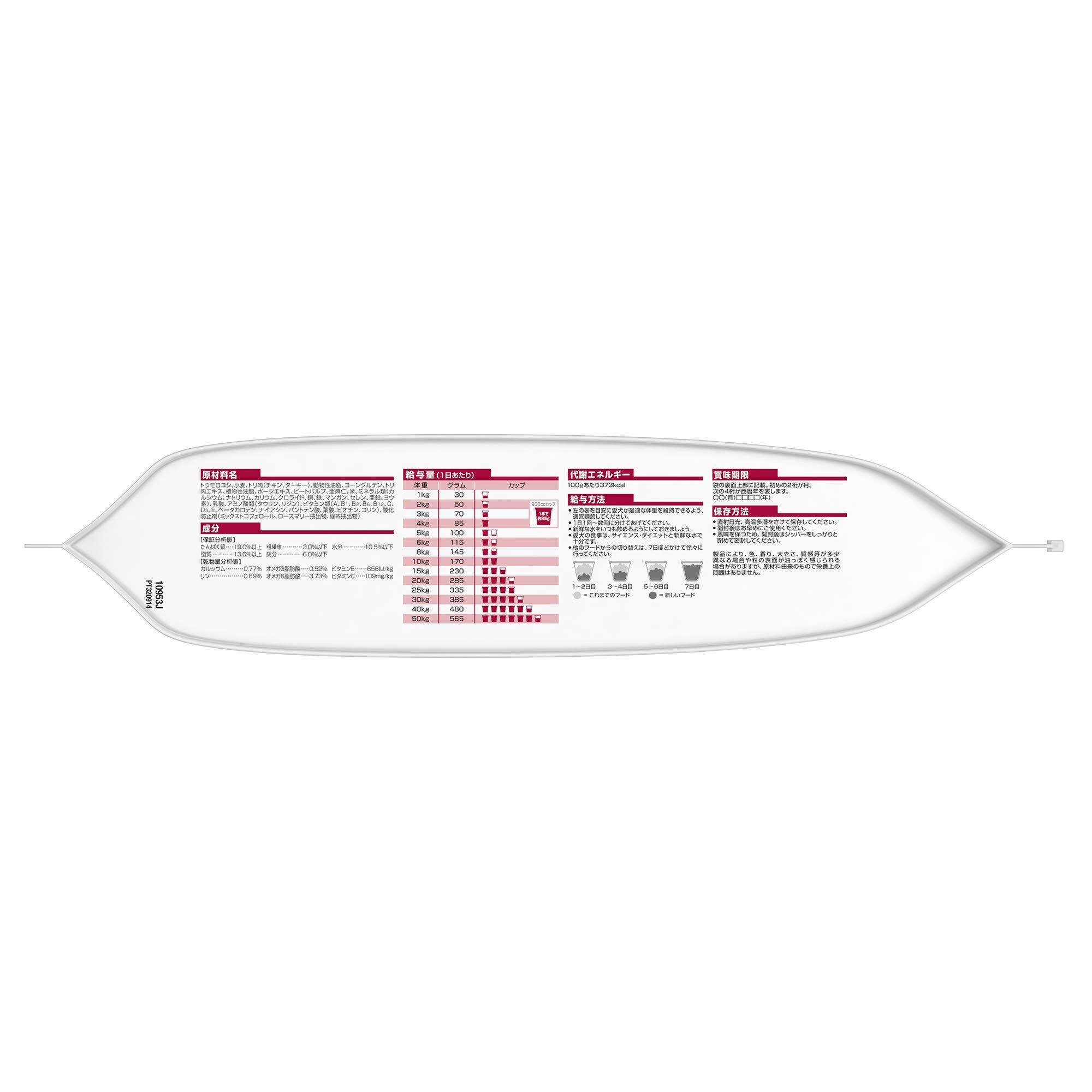 賞味期限読み方:パッケージ裏面に直接印字されている数字、上段最初の6桁 ddmmyy(日月年)例)291006→2006年10月29日 愛犬の食事は、サイエンス・ダイエットと新鮮な水で十分です。新鮮な水がいつも飲めるようにしておきましょう。他のフードからの切り替えは、7日ほどかけて徐々に行ってください。