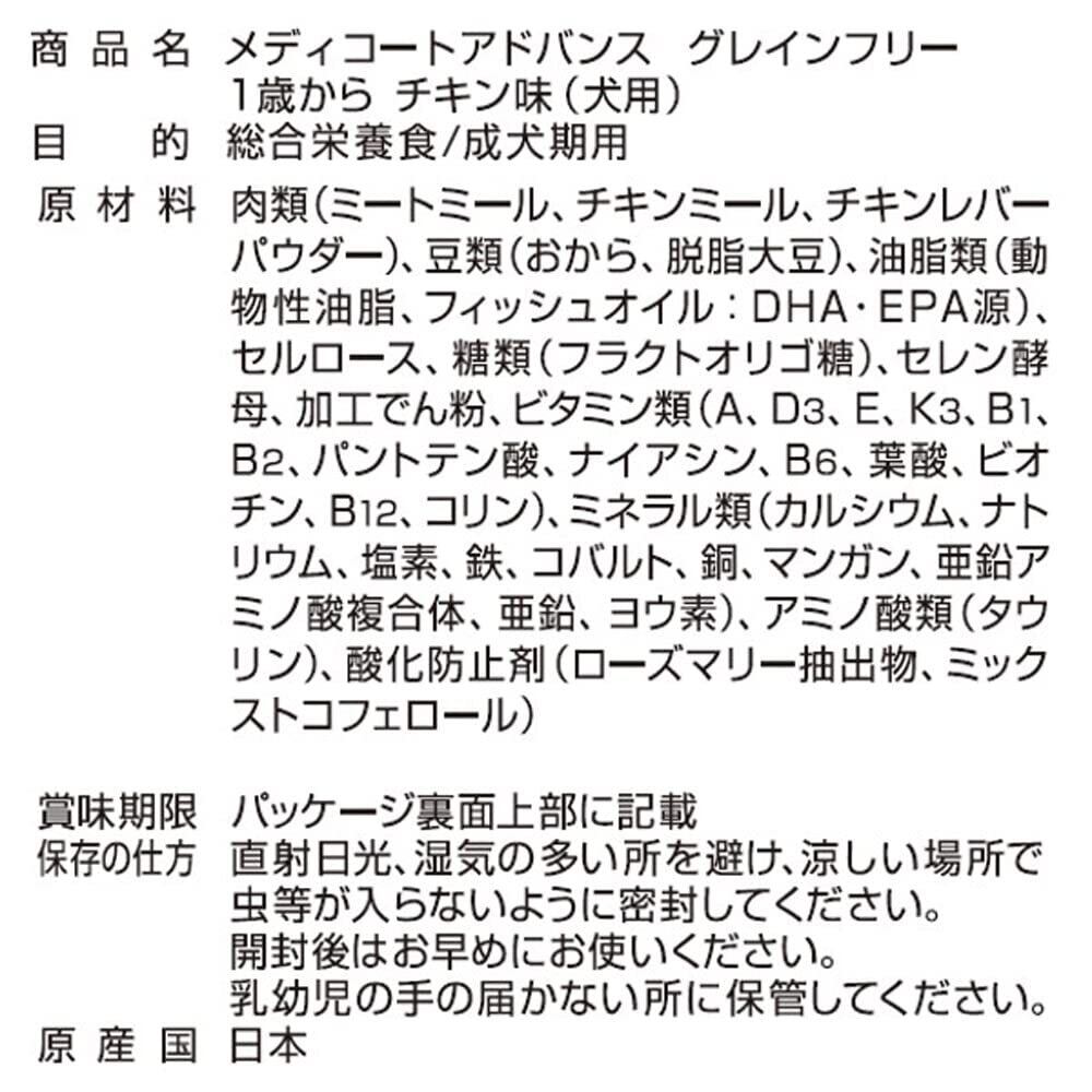 メディコートアドバンス グレインフリー 1歳から チキン味【国産/アルミ小分け】 2kg(500g×4)