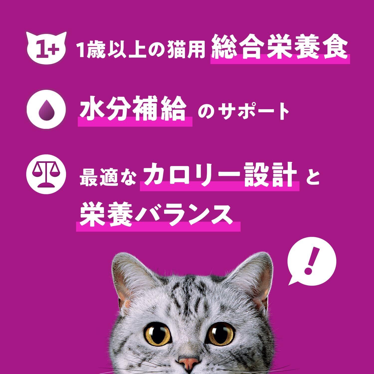 抜群のおいしさに進化!厳選されたまぐろ・かつお・ささみをカルカン特製だしで煮込み、ジューシーなゼリー仕立てにしました。1歳以上の猫に必要な栄養素がバランスよく含まれた総合栄養食です。