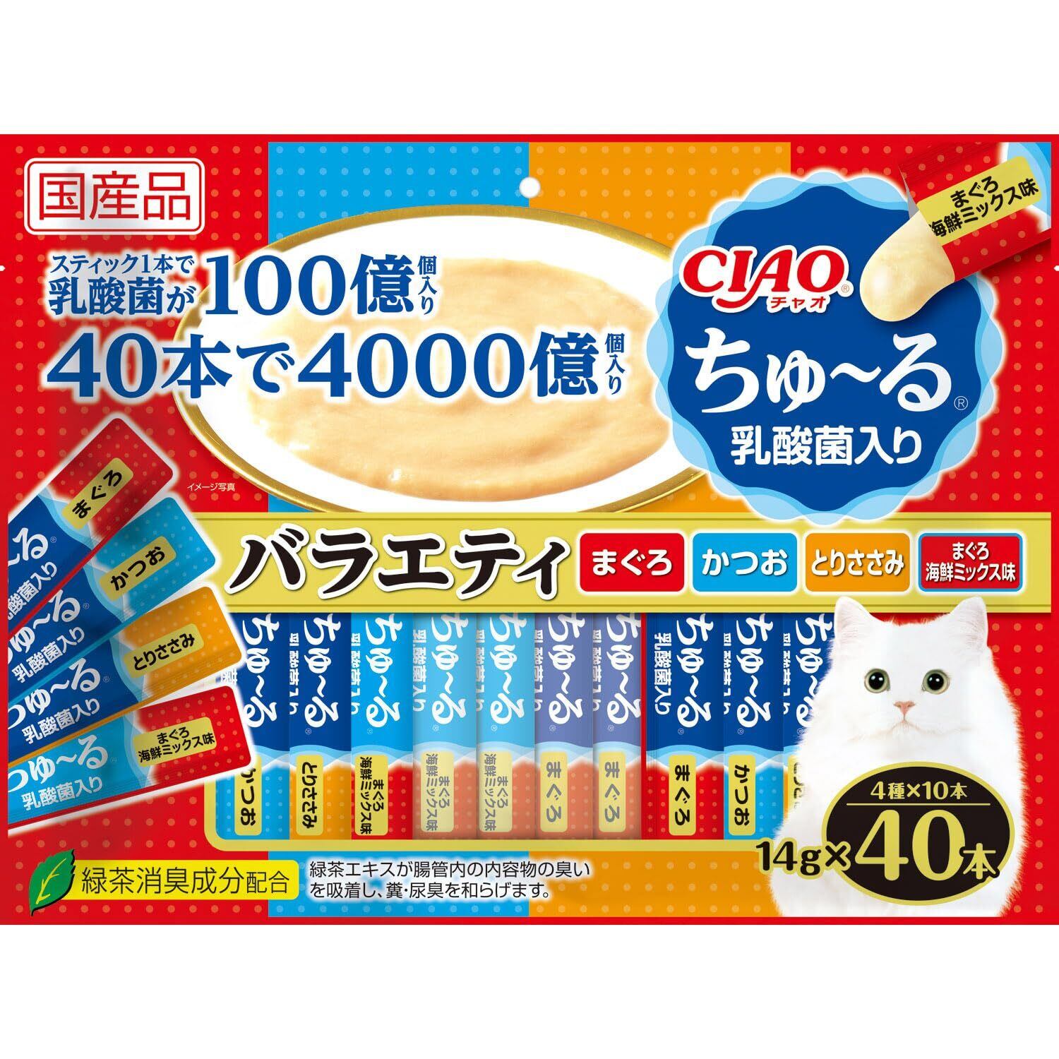 チャオ (CIAO) ちゅ~る 乳酸菌入り バラエティ 40本 猫用おやつ