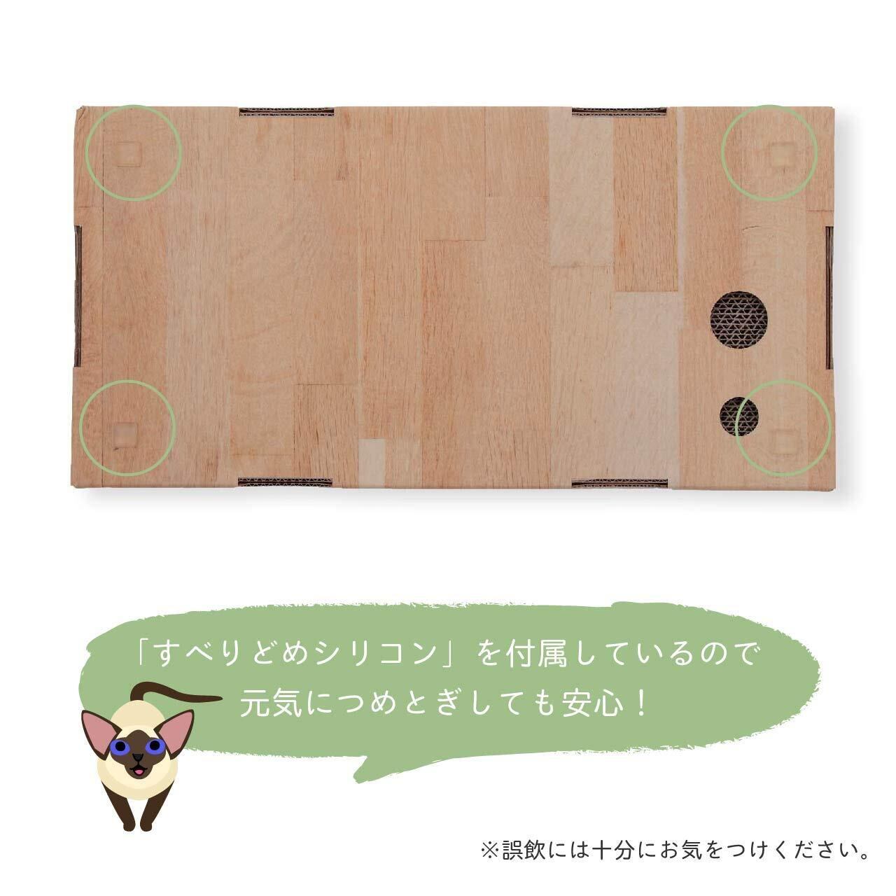 【こだわり抜いた原材料】つめとぎ部分に使用しているダンボールは、原料の100%が紙。 内10%はニュージーランド産原パルプ紙を使用。大切な猫に使用するつめとぎなので、品質にはとことんこだわりました。 ダンボールを貼り合わせる糊は植物由来の糊を使用しています。