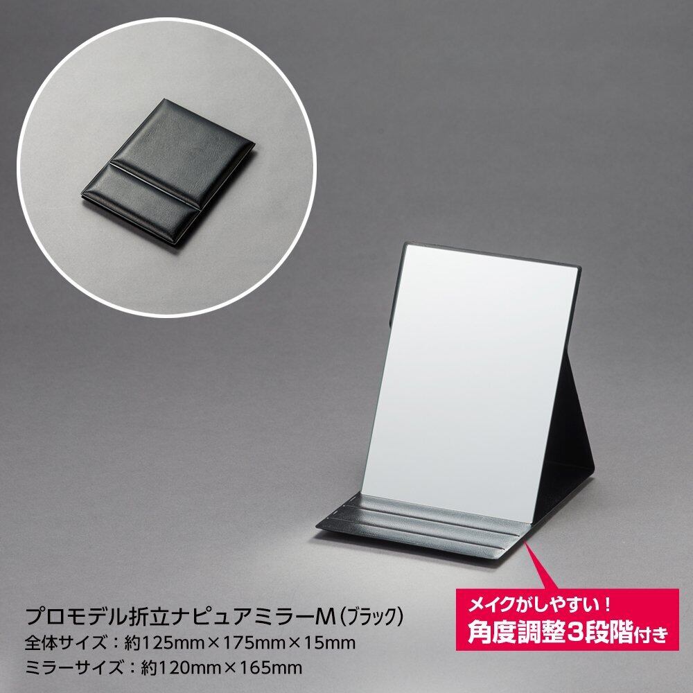 堀内鏡工業 本当の肌色を映すナピュアミラー プロモデル折立ミラー Mサイズ ブラック 化粧鏡 クリスマス プレゼント