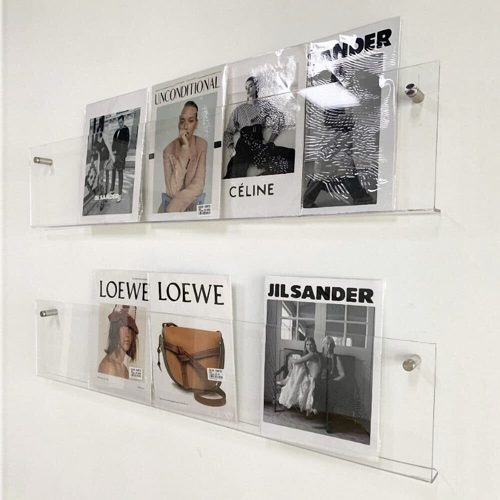 PonyLes マガジンラック 壁掛け マガジンスタンド INS風 北欧 透明 アクリル製 雑誌ラック 壁掛け棚 本棚 ラック 壁面収納 パンフレットスタンド 60*15*5cm 80*15*5cm 100*15*5cm 40*15*5cm ([おすすめ]透明:100*15*5cm) | 毎日発送✿はなまる