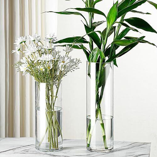 景徳焼 ガラス 花瓶 花器 シリンダー 円柱 花瓶 大 フラワーベース ガラス 割れない 一輪挿し北欧 透明 花器 シンプル クリア大きな インテリア 室内透明 広口 け花部屋 玄関 リビング プレゼン 贈り物 飾り (直径10cm 高さ30cm) | 毎日発送✿はなまる