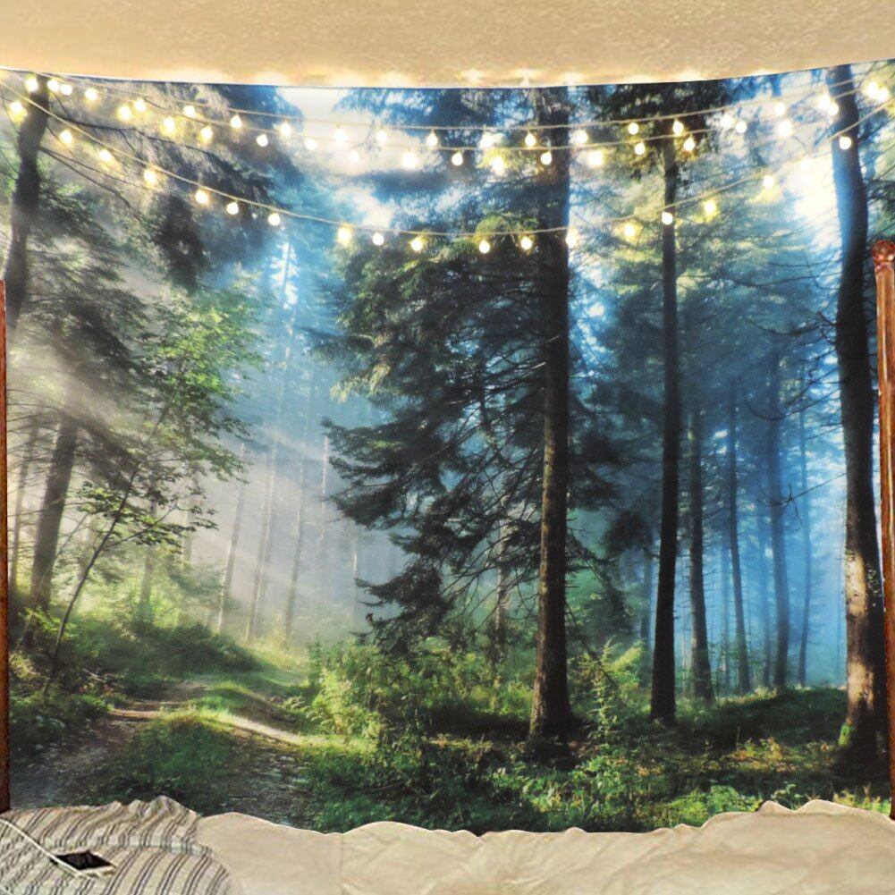 Pknoclan 森の光 タペストリー 木 自然風景 大判 壁掛け 風景画タペストリー 新緑の並木 多機能壁掛け モダンなアート 布ポスター 模様替え 部屋 窓 カーテン 新居祝い お店 個性ギフト 210x150cm | 毎日発送✿はなまる