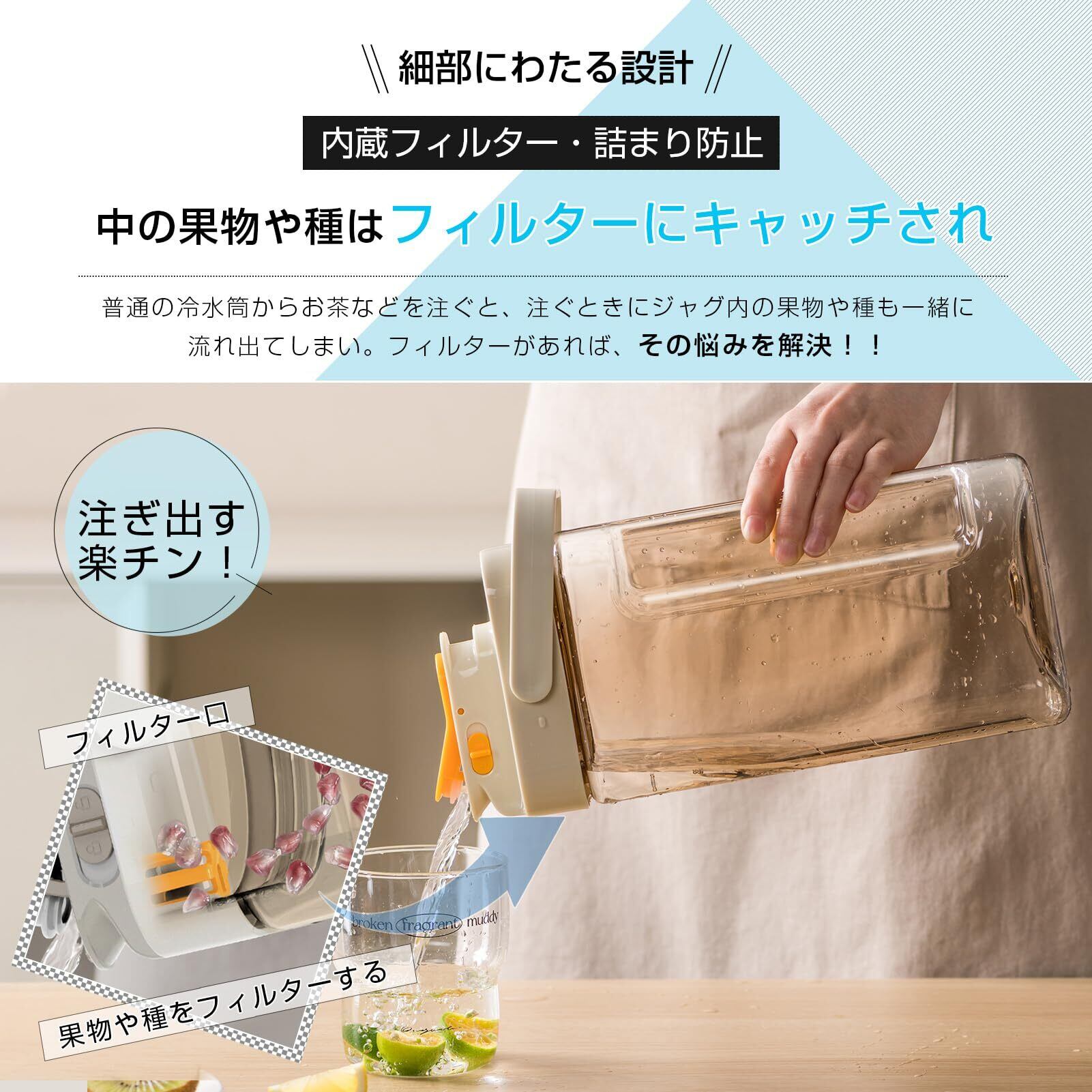 【商品仕様&アフターサービスについて】容量:3.5L(リットル) サイズ(容器本体):16x15x32cm 「材質」:本体:AS樹脂、 蓋/取手:PP、フラップ/開閉ロック:ABS、密封リング/プラグ:シリコン、内部バネ:SUS304。※ご注意:フルーツティーは当日中にお飲みいただくことをお勧めします。ご注意※注ぎ口のスイッチ内部パッキンやスプリングなどの部品は小さな部品であるため、商品到着後まずご確認ください。ご購入して、当製品に初期不良や欠陥等がございましたら、「お問い合わせ」よりご連絡くださいませ。