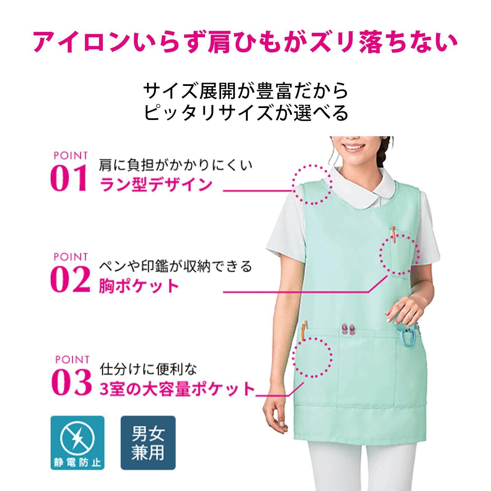 [アンファミエ] ノーアイロン エプロン ラウンド 保育士 介護 無地 大容量ポケット付き 2段階ボタン S-M ピンク