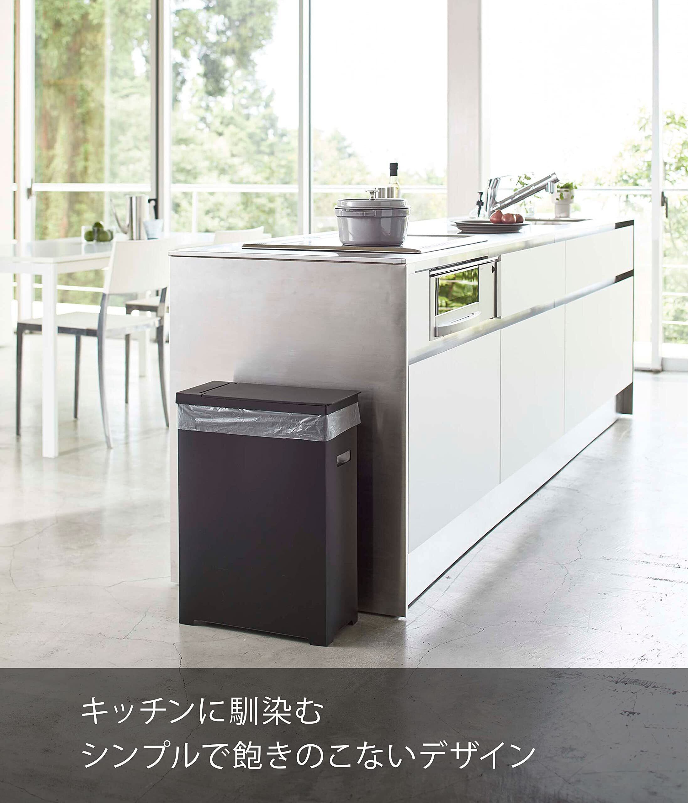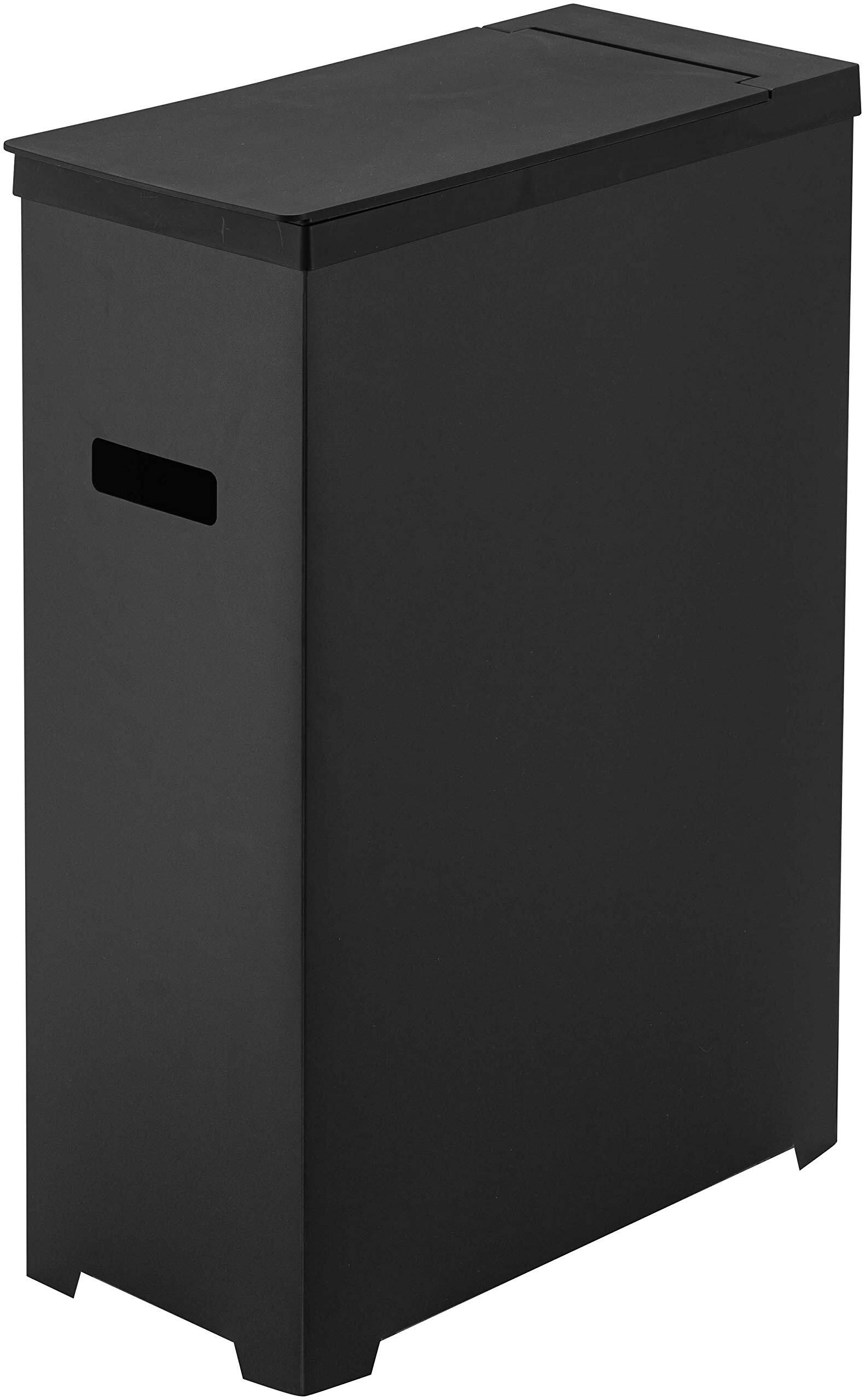 山崎実業(Yamazaki) スリム蓋付きゴミ箱 ブラック 約W19XD40XH54cm タワー 折り畳んで運べる 5204