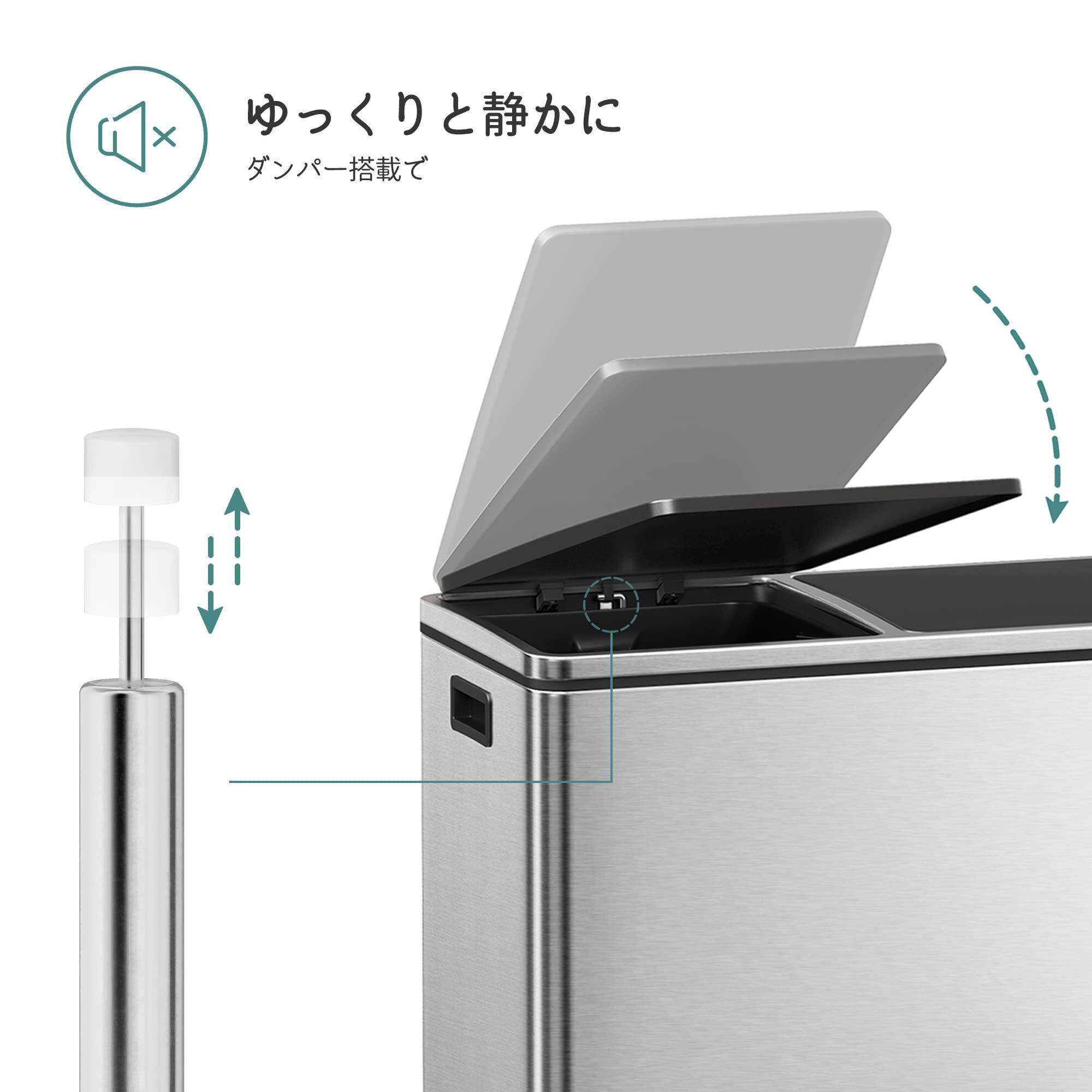 SONGMICS ゴミ箱 ダストボックス 2分別 ゴミ袋付き ペダル式 2x30L インナーバケット二つ ステンレス 密閉 音無し おしゃれ スリム 室内 キッチン 蓋付き LTB60NL | 毎日発送✿はなまる