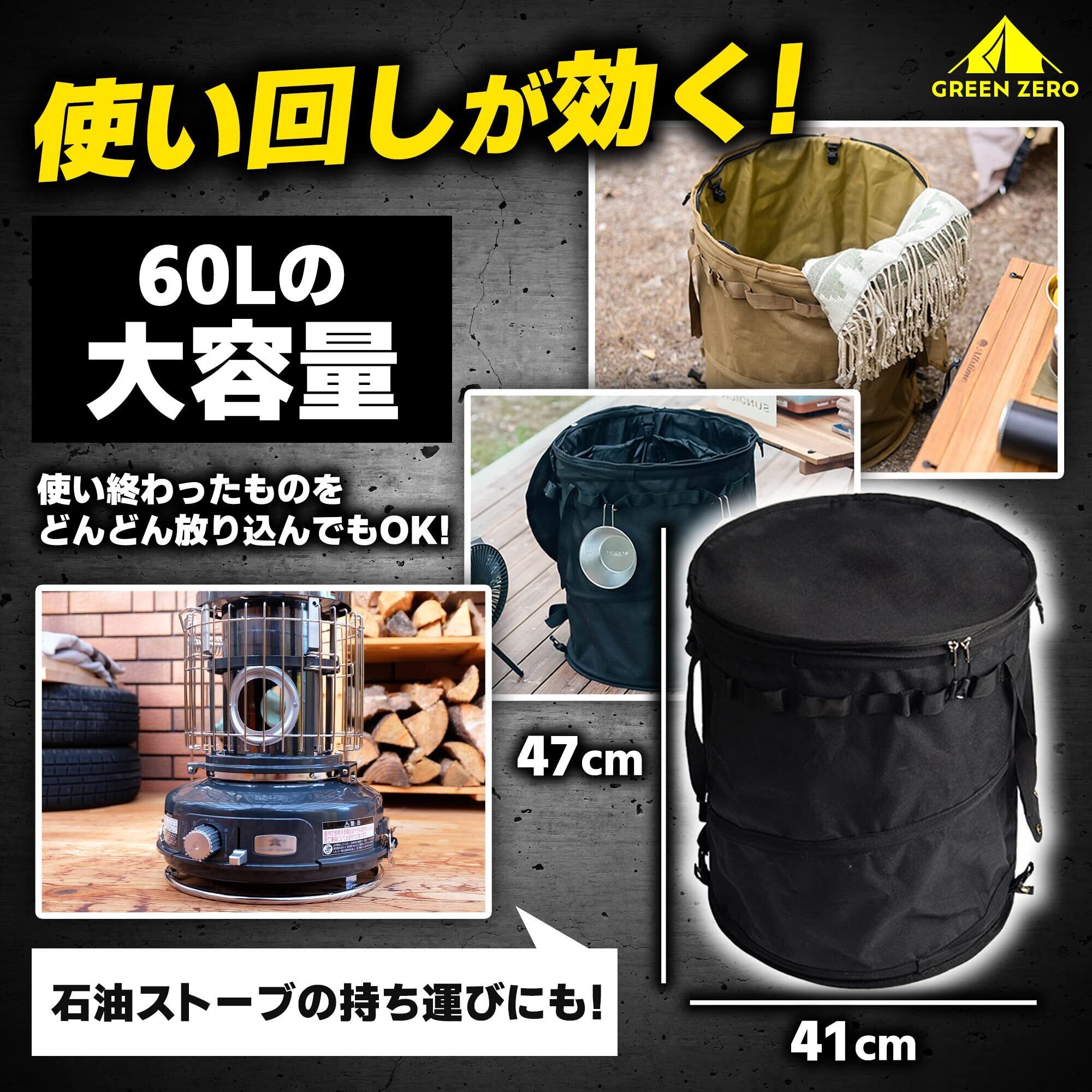 サイズ:直径41cm、高さ47cm、容量60L ドラム式 トラッシュボックス 大容量 アウトドアやレジャーで大活躍マルチコンテナ!ゴミ箱としてはもちろん、キャンプ用品やランドリー、ストーブの収納に便利!