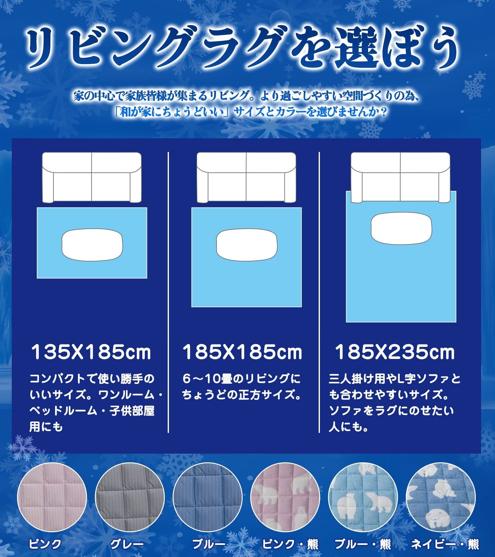 Lemon Bear 冷感 ラグ カーペット 夏用 ひんやり ラグマット キルトラグ 185×185cm(約2畳) 洗える ひんやりマット 接触冷感 ラグ 夏 ひんやりラグ 冷感 抗菌防臭 滑り止め付(185×185cm ブルー) | 毎日発送✿はなまる