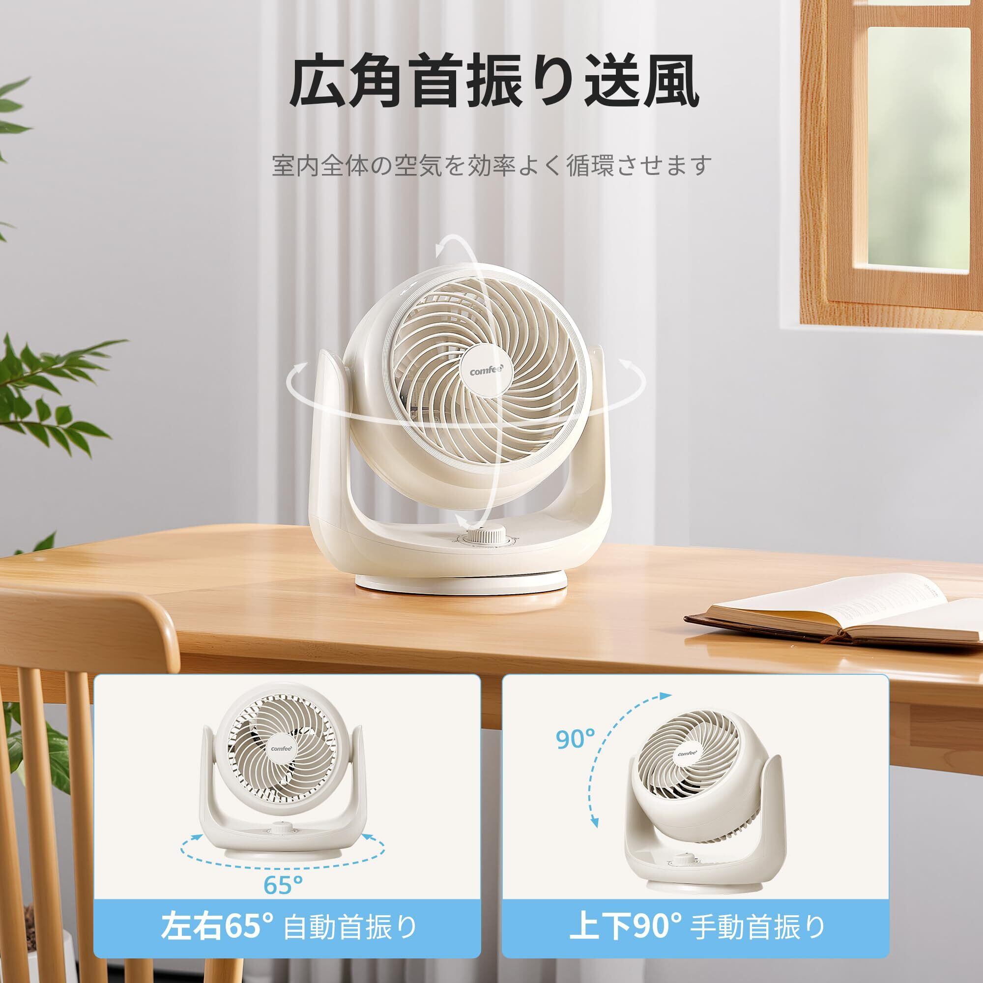 COMFEE' サーキュレーター 扇風機 兼用 静音 18畳 左右自動首振り 上下角度調節 風量3段階調節 強力送風 省エネ 小型 卓上/洗面所 一台多役 換気/空気循環/部屋干し/冷房 梅雨除湿 衣類乾燥 洗える 3枚羽根 軽量 ベージュ色 | 毎日発送✿はなまる