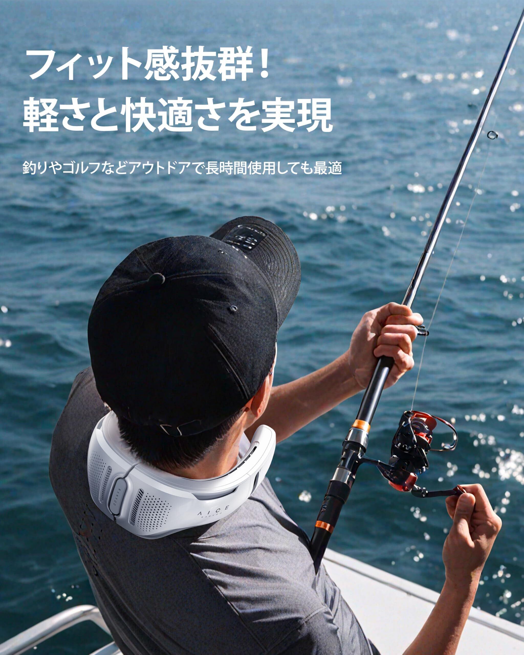 【軽くて疲れにくい!どんな体型にもフィット】 AICE LITEプラスは、わずか480gの超軽量設計。重さが首や肩にバランスよく分散されるため、長時間つけても負担を感じにくく、通勤中やスポーツ中でも快適に使えます。首元には柔らかいメモリーシリコン素材を採用。首の形に合わせてしなやかにフィットし、きつくもゆるくも、自分好みに調整できます。首まわりが細い方からしっかりした体格の方まで、どなたでも自然にフィット。毎日の暑さ対策にぴったりの快適さです。