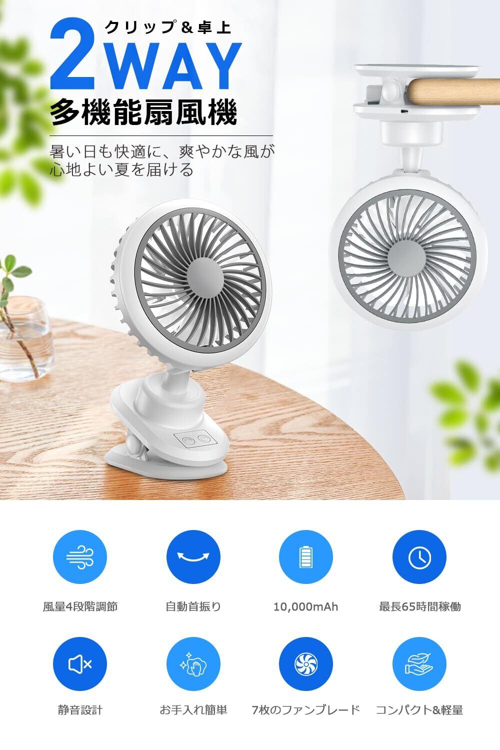 クリップ扇風機 卓上扇風機 【2025夏新開発&3D自動首振り&10000mAh電池内蔵】 充電式 usbファン 65時間連続使用 15db静音 7枚羽根 超強風 風量4段階調節 卓上ファン Type-C急速充電 サーキュレーター オフィス 車用 キャンプ アウトドア 熱中症対策 母の日 父の日 プレゼント