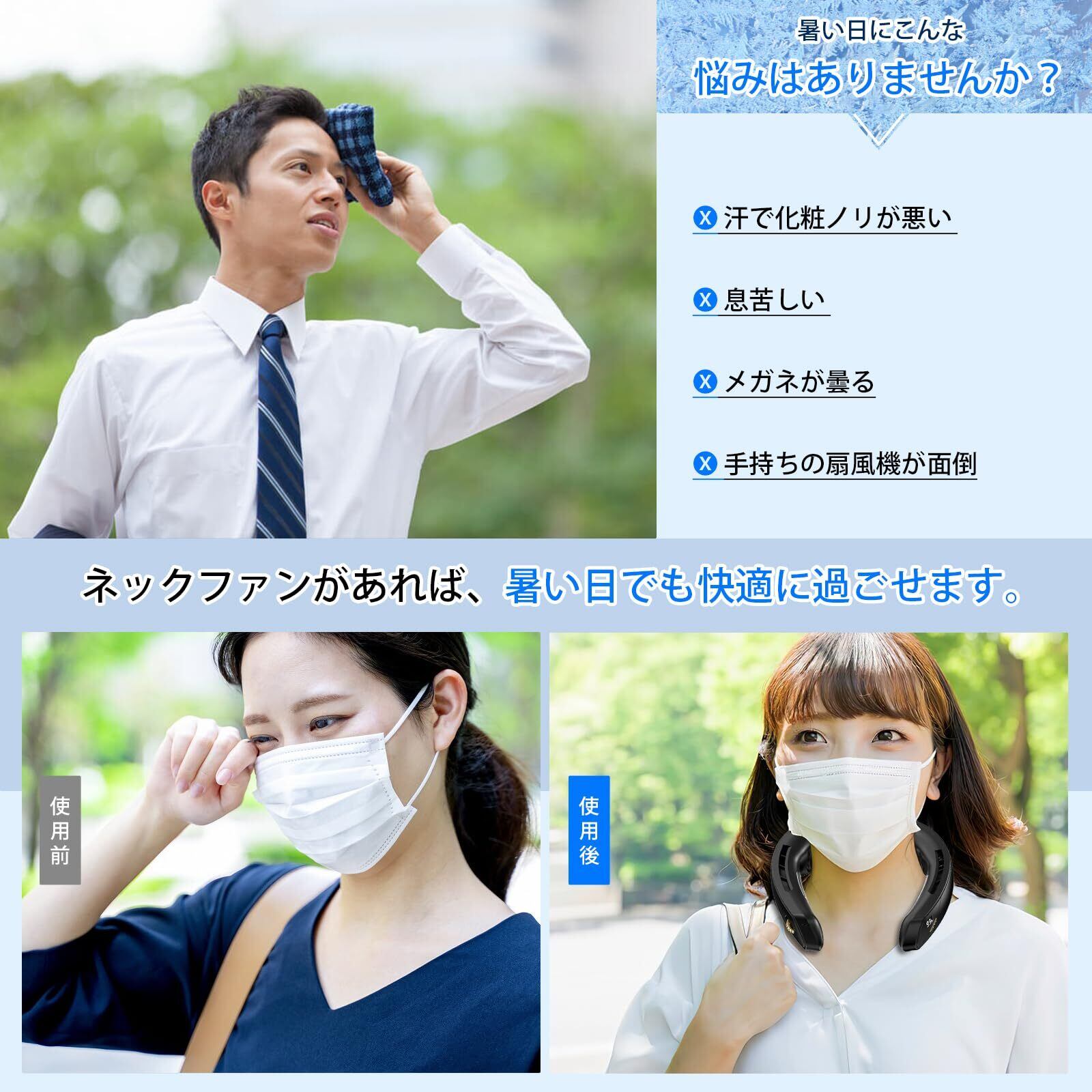 【夏の様々なシーンに対応】このネックファンは、コンパクトなサイズで軽量設計なので、持ち運びが簡単です。様々なシーンで、どこでも気軽に使えます。オフィスや家事、通勤・通学時の暑さも、このネックファンがあれば大丈夫!暑い夏の日も首かけ扇風機で涼しく過ごしましょう!さらに、スポーツ観戦やピクニック、ショッピングなど、日常のアクティビティにも最適な首掛け扇風機です。