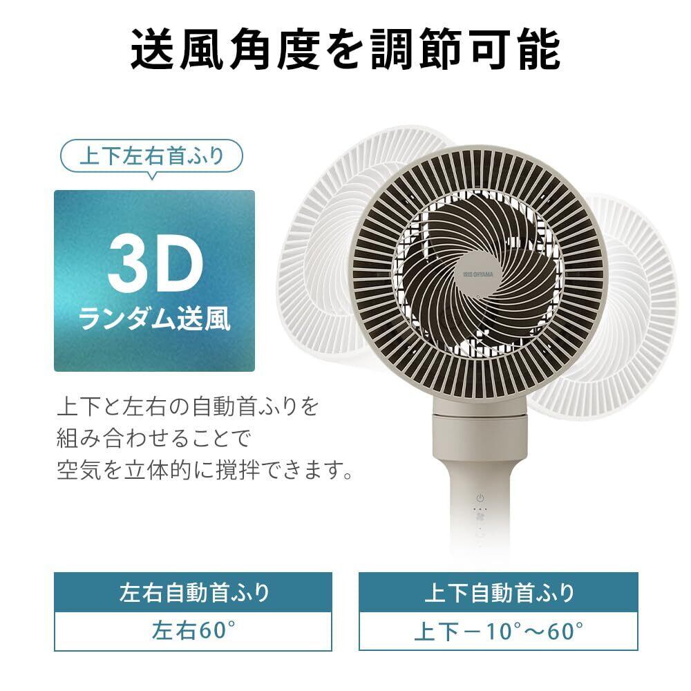 上下と左右の自動首ふりを立体的に組み合わせることにより、強力に空気を撹拌します。