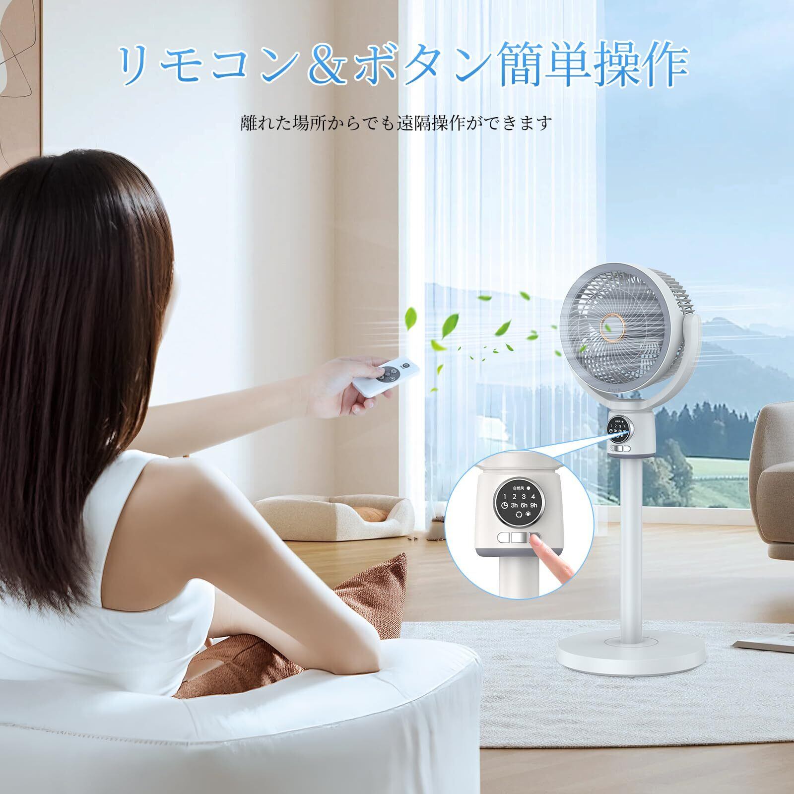 【5段階風量調節&全年用サーキュレーター】微風から、強風まで使用シーンに合わせ自由に5段階風量調節できます。また、リモコン操作にも対応しており、リモコンで電源のオン/オフ、風量調節、タイマー設定、首振り機能などを一括して操作できます。リビングのソファや寝室のベッドからでも快適に操作が可能です。部屋用扇風機のみでの使いやすさはもちろん、換気、衣類乾燥・部屋干しや空気循環を行うさーきゅれーたーとしても使える1台多役仕様です。最大風速6m/sまでパワフル送風を実現!猛暑対策、梅雨、除湿、季節を問わず1年間フル稼働できる優れモノです。環境に応じて切り替えることができ、強力な風で夏の暑さを吹き飛ばし、一年中快適に使用できるエアサーキュレーター扇風機です。