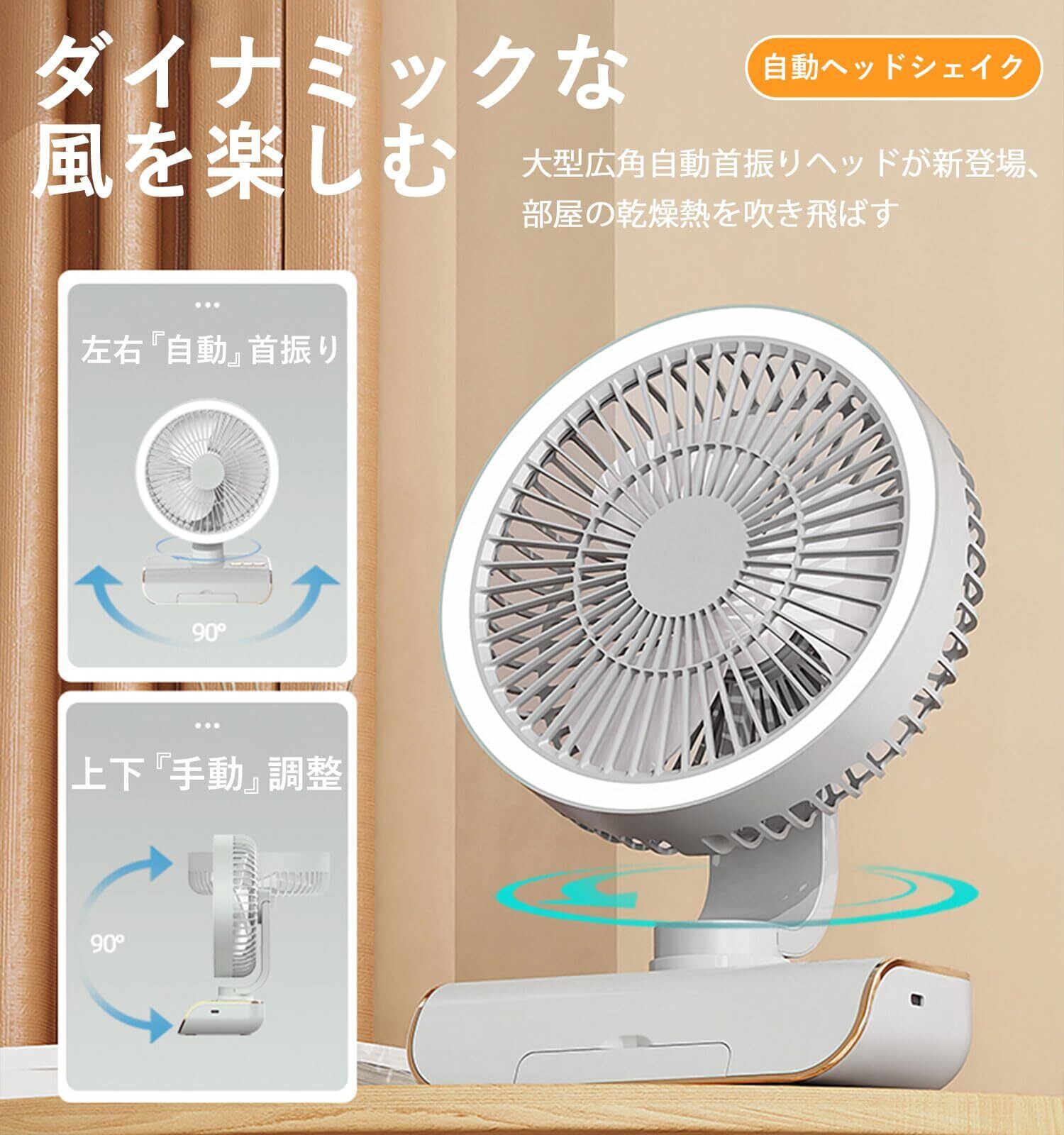 【5種類の気流モード調節・2段階の照明機能】サーキュレーター 静音 5つのモードで調節可能で、優しいそよ風から室内の空気を素早く循環させる強風まで、お好みに合わせてお選びいただけます。風が部屋の隅々まで行き渡り、室内の空気をしっかりと循環させます。 風量は4段階で手動調節可能で、自然で優しい微風から暑さを吹き飛ばす強風まで、使用シーンに応じて自由に調整できます。夏の冷房や冬の暖房、部屋の換気、梅雨時期の洗濯物乾燥など、一年中さまざまな場面でご活用いただけます。さらに、ファンには2段階調節可能な環境照明が付いており、お部屋に快適で心地よい明るさをプラスします。