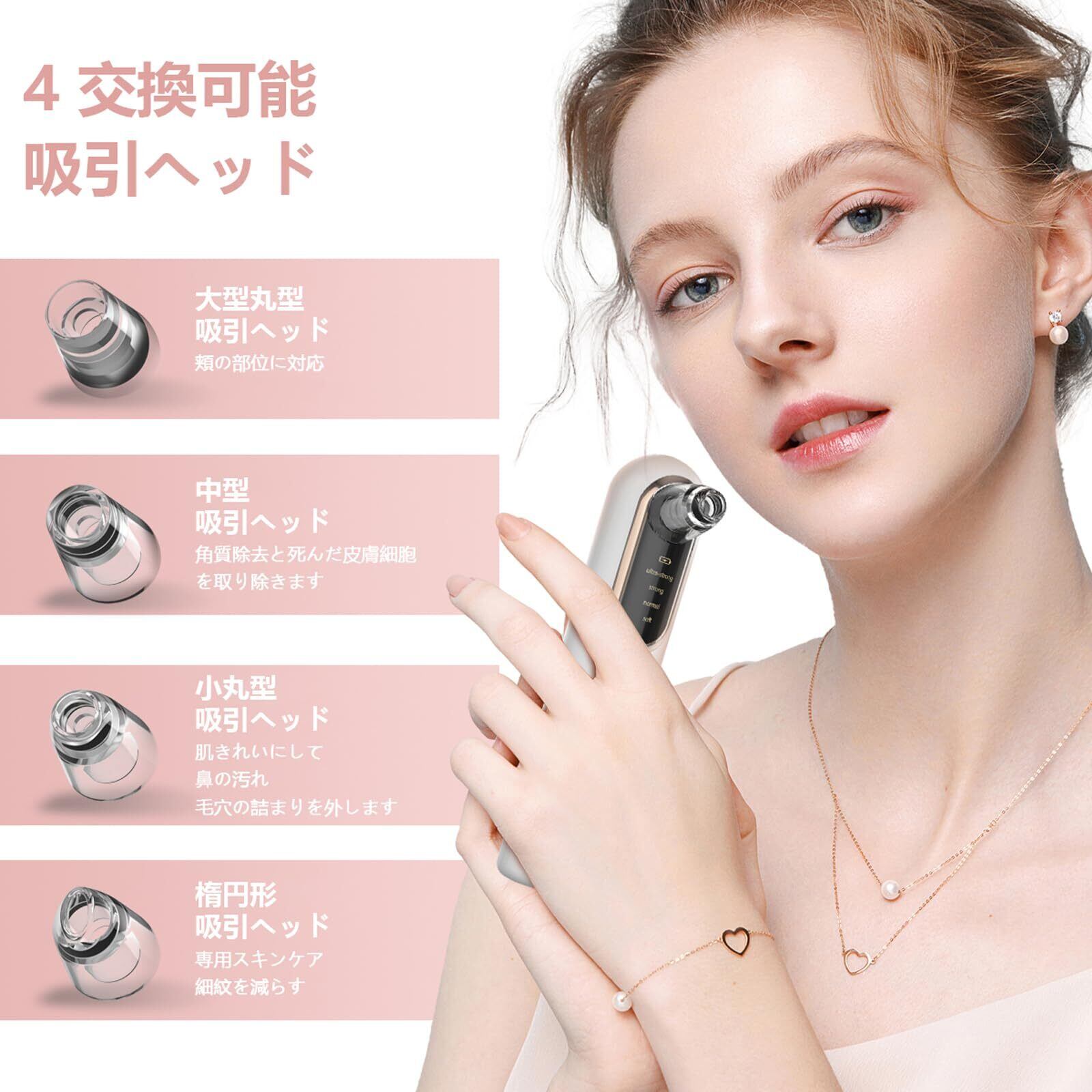 【4階段の吸引力】:4つの調整可能な吸引レベルで、先端の真空吸引技術で、通常の製品より高い吸引力を提供します。黒ずみや白ずみさえも簡単に除去します。レベル1は敏感肌、レベル2は乾燥肌、レベル3は正常肌、レベル4は混合肌と油性肌に適しています。1回の充電で最大2時間の使用が可能です。