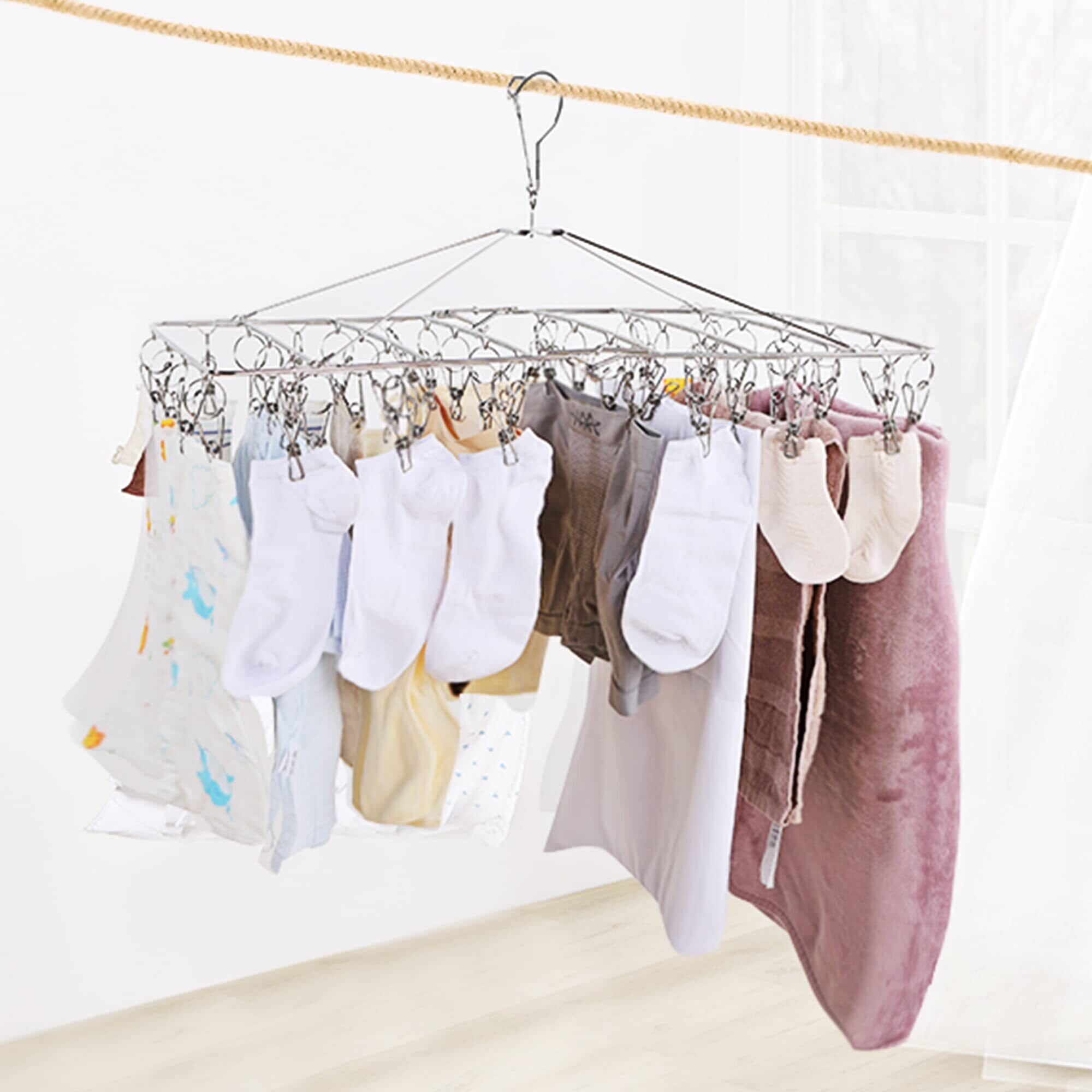チチロバ(TITIROBA) ピンチハンガー 52ピンチ 角ハンガー 引っ張るだけ オールステンレス 洗濯ハンガー 洗濯ピンチ 洗濯 大きい タオル 銀色 62*34*8cm【予備ピンチ15個付)】 | 毎日発送✿はなまる