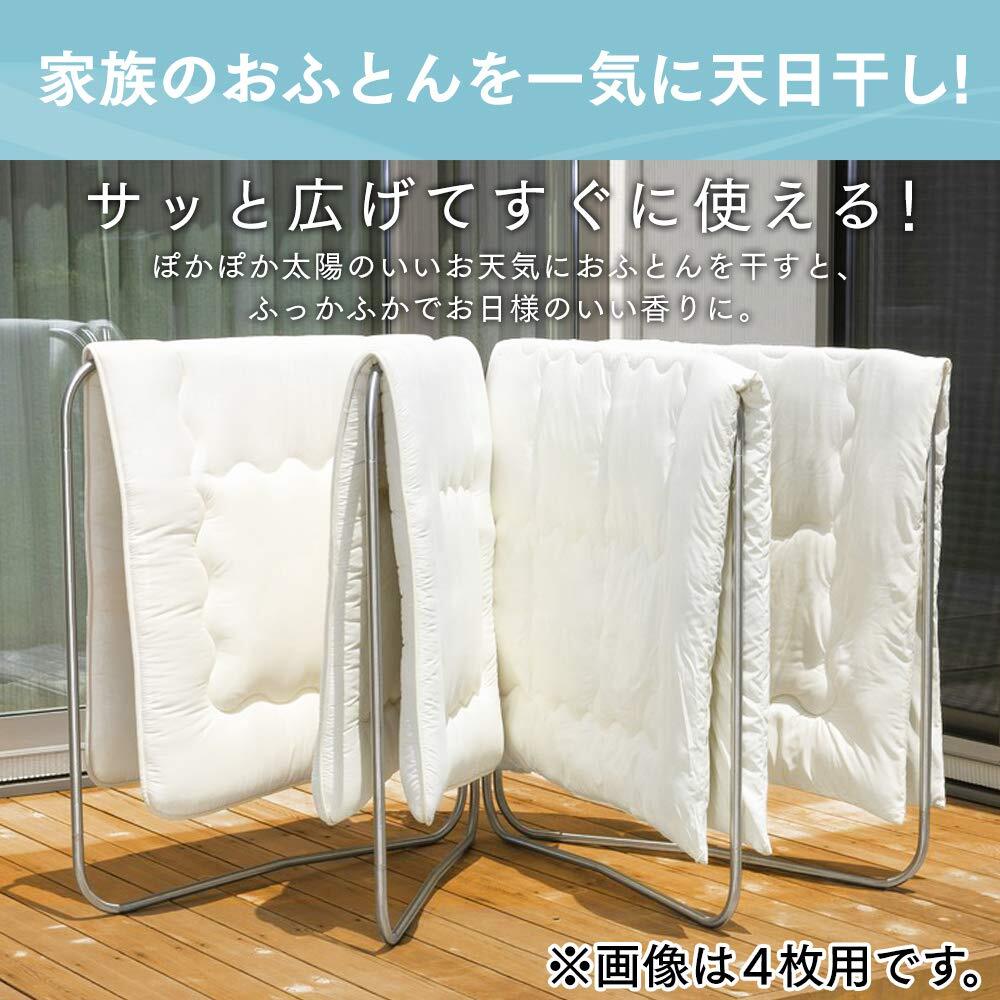 干しやすい扇型タイプなので、サッと広げてすぐ使える。家族のおふとんを一気に天日干し。