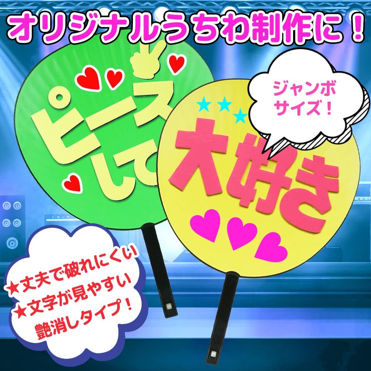 【ジャンボサイズ!】コンサートや応援で目立つジャンボうちわ。ジャニーズ公式うちわのサイズ内なので安心して使用できます。会場で目立つ可愛い蛍光色!自由にデコレーションして、推しへの愛を伝えよう!