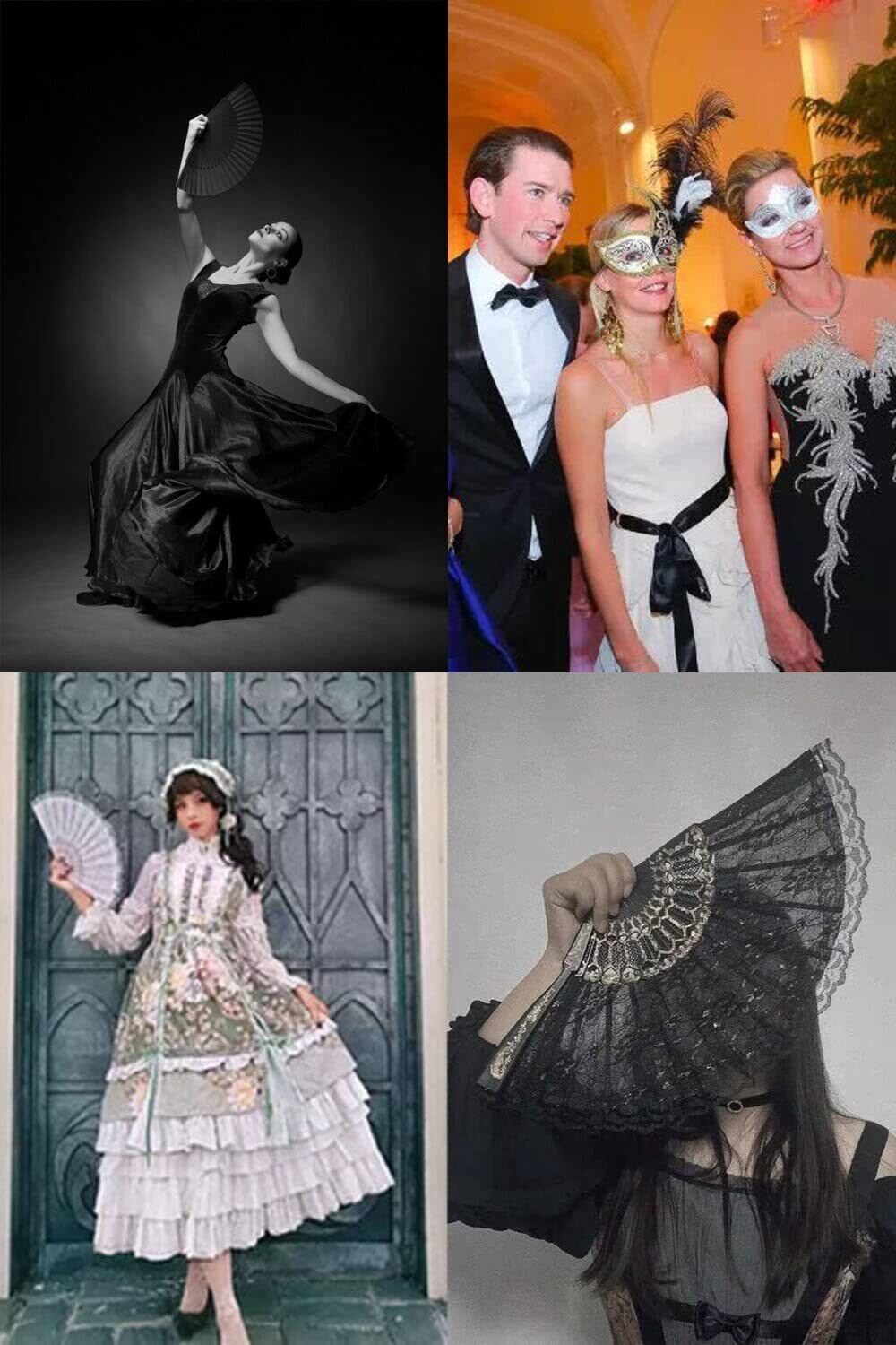 harukita 扇子 レース 折りたたみ式 ハンドファン クラフト 手持ちファン パーソナライズされたファン ョン プラスチックファン 折りたたみレースファン 装飾の扇子 2個 ブラック ホワイト | 毎日発送✿はなまる