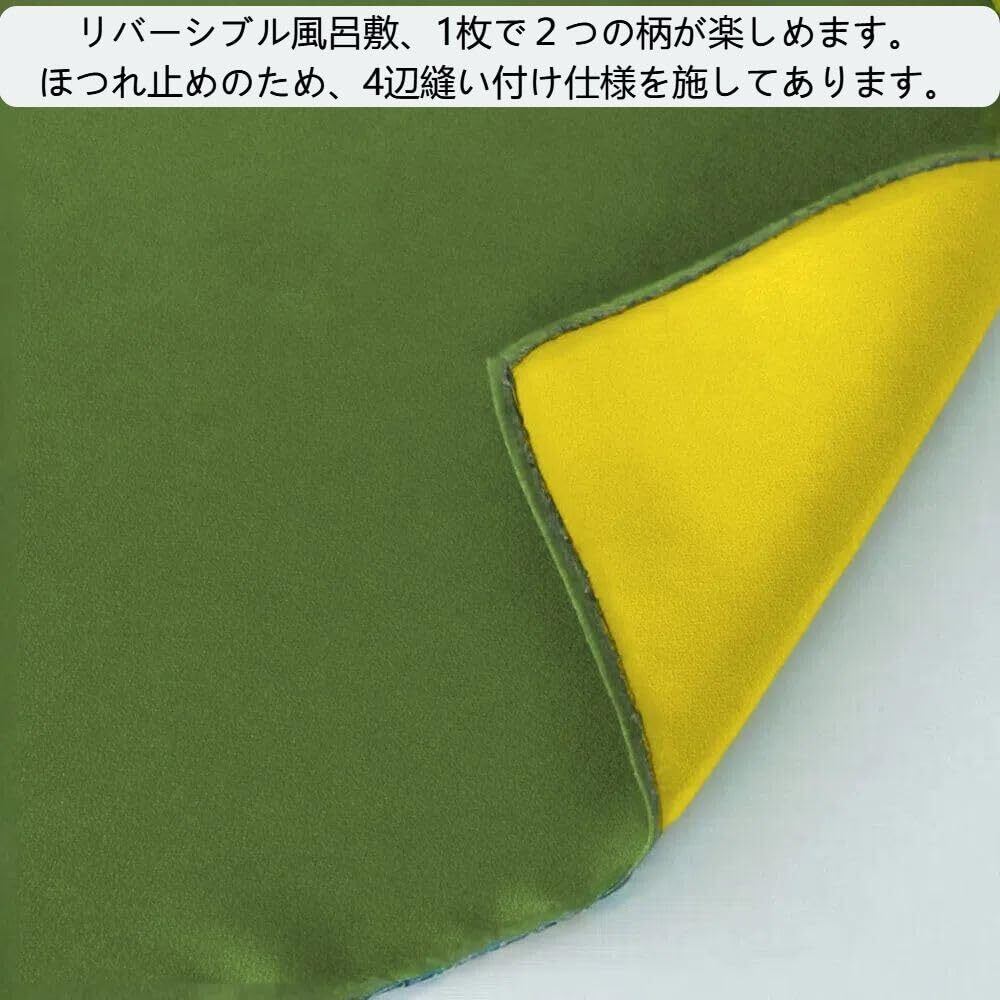 大判風呂敷 140cm 風呂敷 ちりめん 無地 リバーシブル ふろしき 140センチ 大判 大きい 特大 万能 ビックサイズ 超大判 着物 振袖 布団 包み (濃緑×黄緑, 140×140cm)
