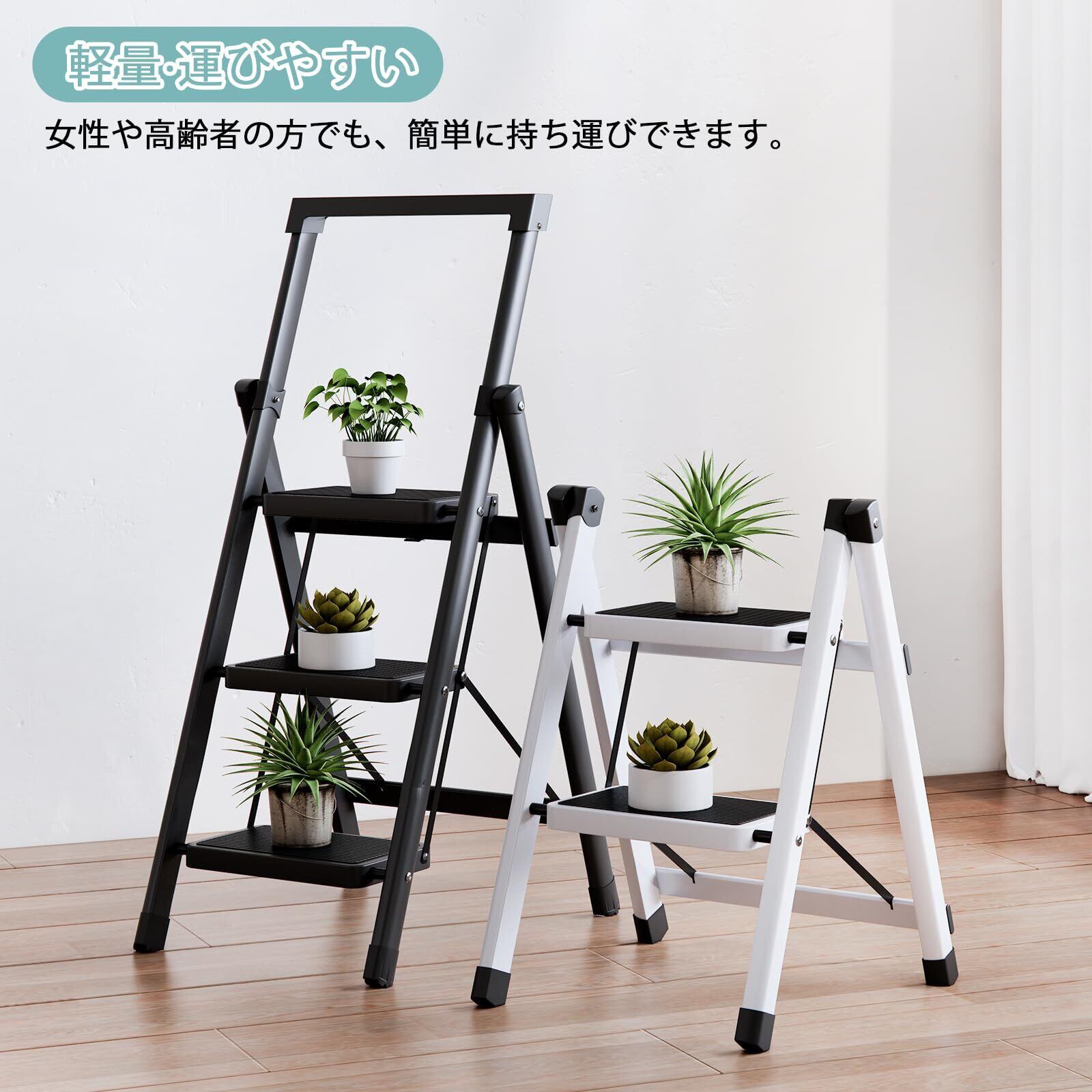 脚立 2段 折り畳み 踏み台 はしご 耐荷重150kg 手すり付き脚立 滑り止め付き ステップ台 安全 軽量 ステップスツール 持ち運び便利 コンパクト 折りたたみ 梯子 室内 洗車台 屋外 多機能 おしゃれ ホワイト