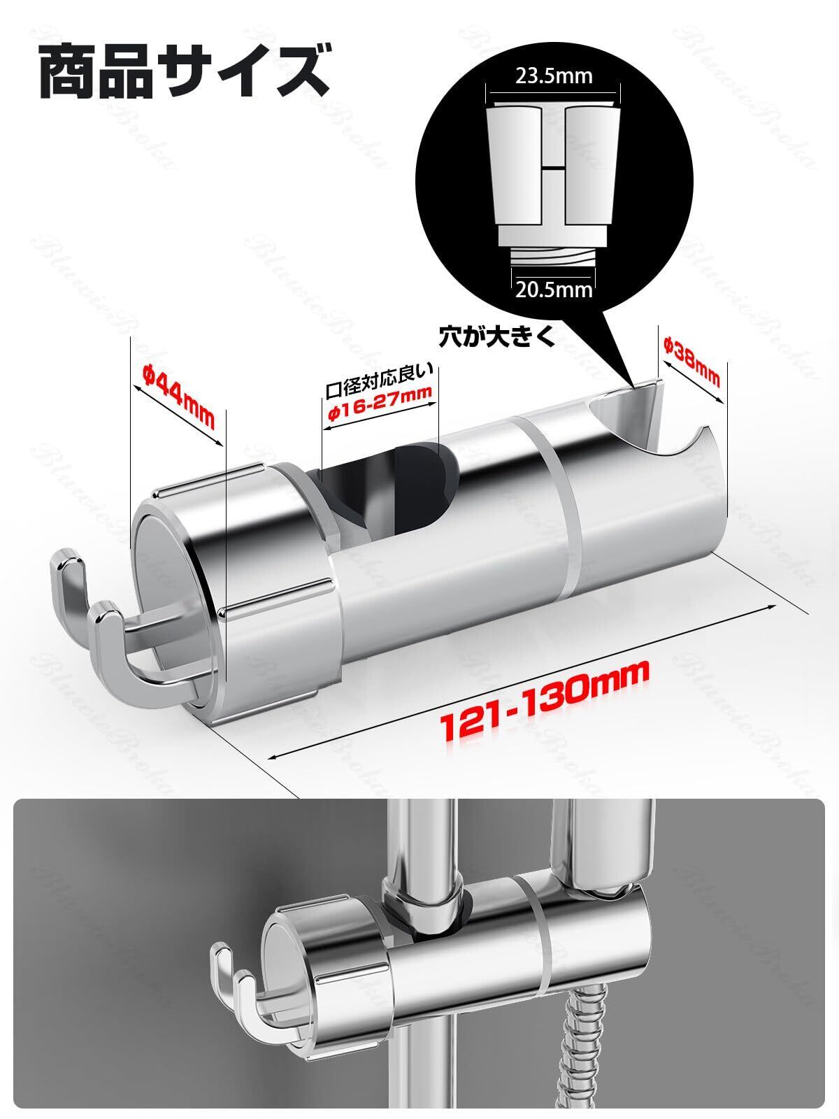 【2024年新型】 シャワーフック シャワーヘッド かけ 16mm~27mm スライドバー対応 修理交換用 シャワーヘッドホルダー 高さ 360°自由回転 簡単取付 可動式 繰り返し利用 8kg積載 穴あけ不要 シャワーハンガー スライドバー 壁掛け 防水 防錆 ブラケット シャワーホルダー メッキ 汎用 アパート 浴室 取り外し可能 後付け可能 小物ぶら下げ シルバー BluwieBroka