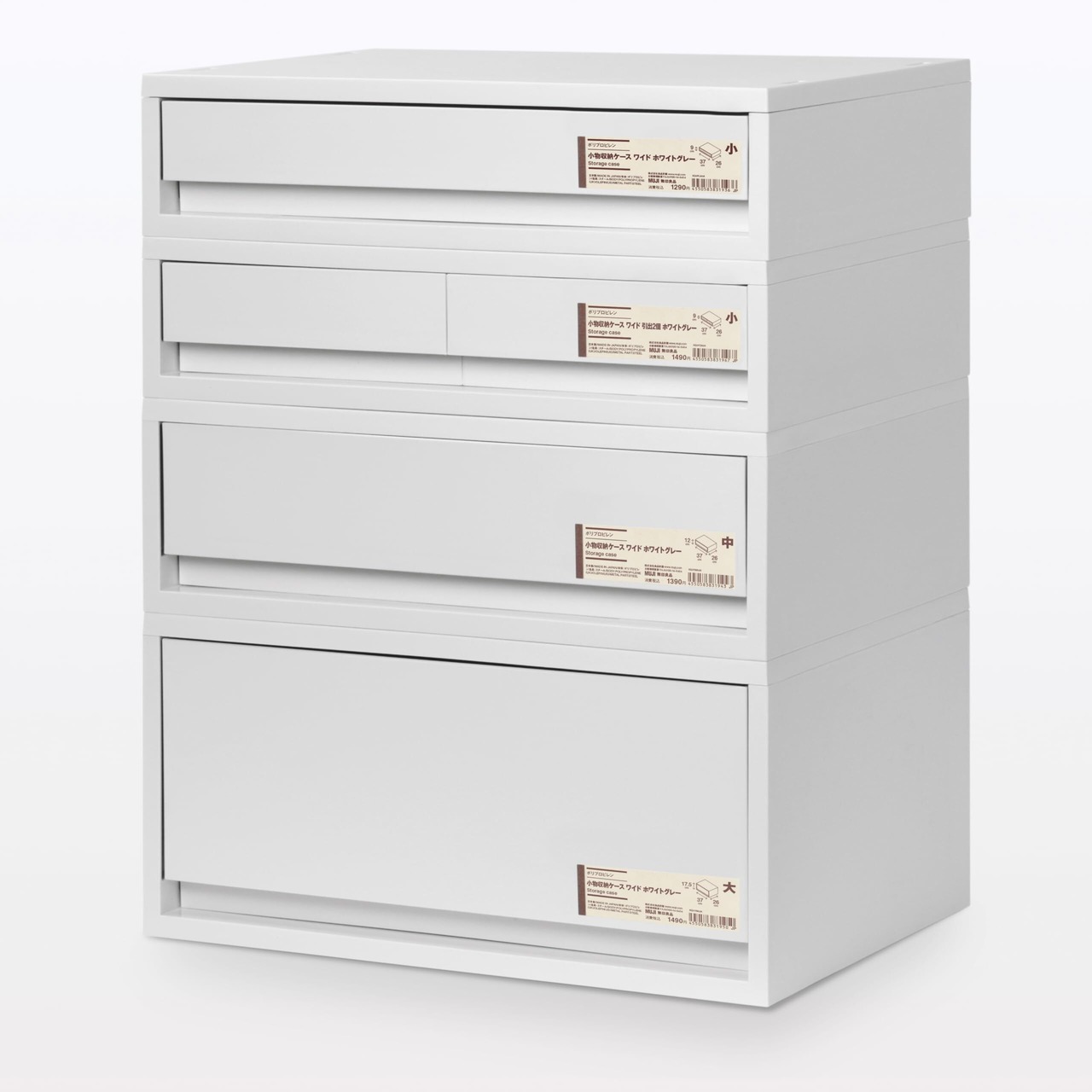 無印良品 ポリプロピレン 小物収納ケース ワイド 小 引出2個 ホワイトグレー 83831967