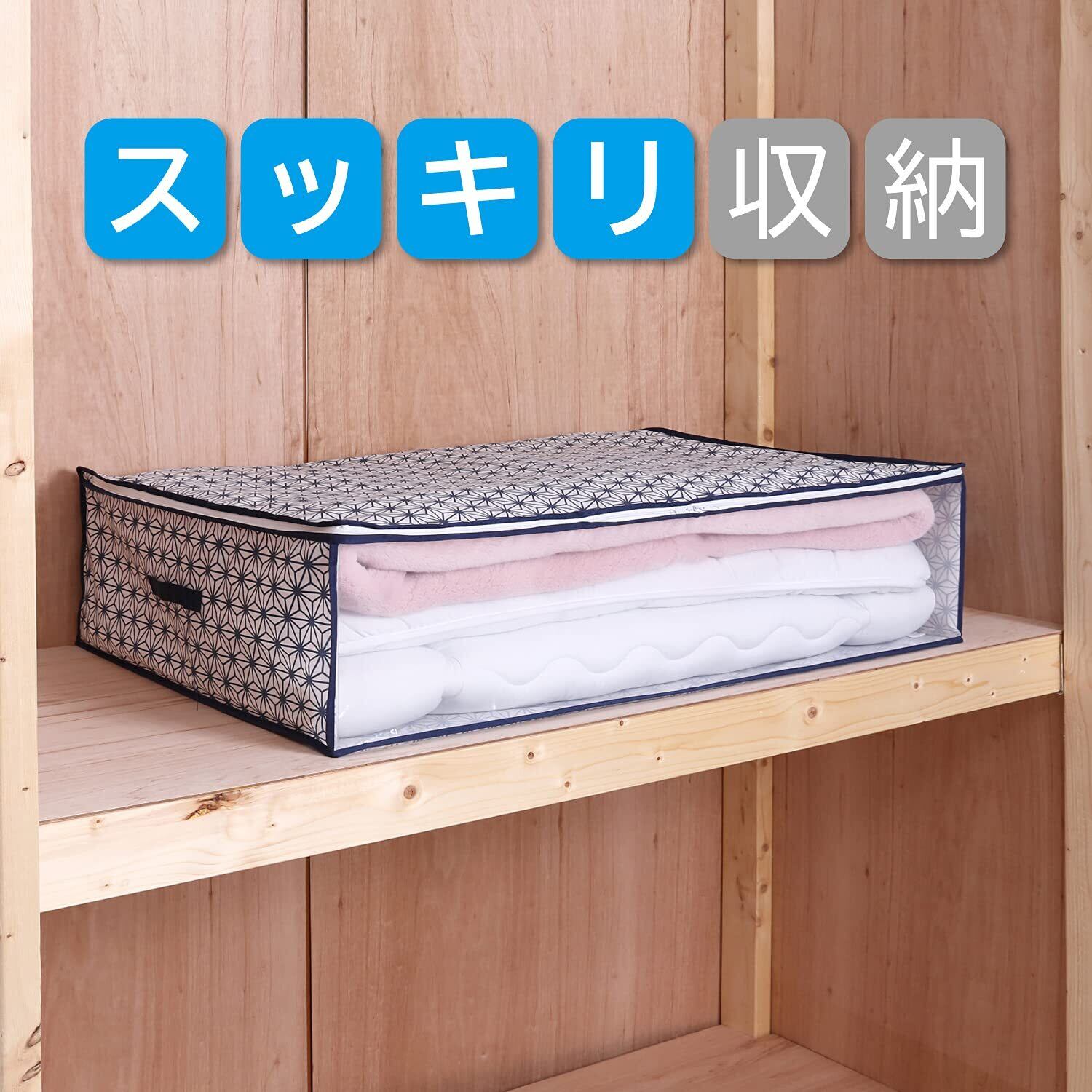 アストロ 敷布団収納ケース 通気性の良い不織布がホコリなどの汚れをガード 出し入れや持ち運びがしやすい持ち手付き 透明窓付き 布団収納 布団袋 収納ケース 引っ越し ホワイト 麻の葉柄 880-35 | 毎日発送✿はなまる