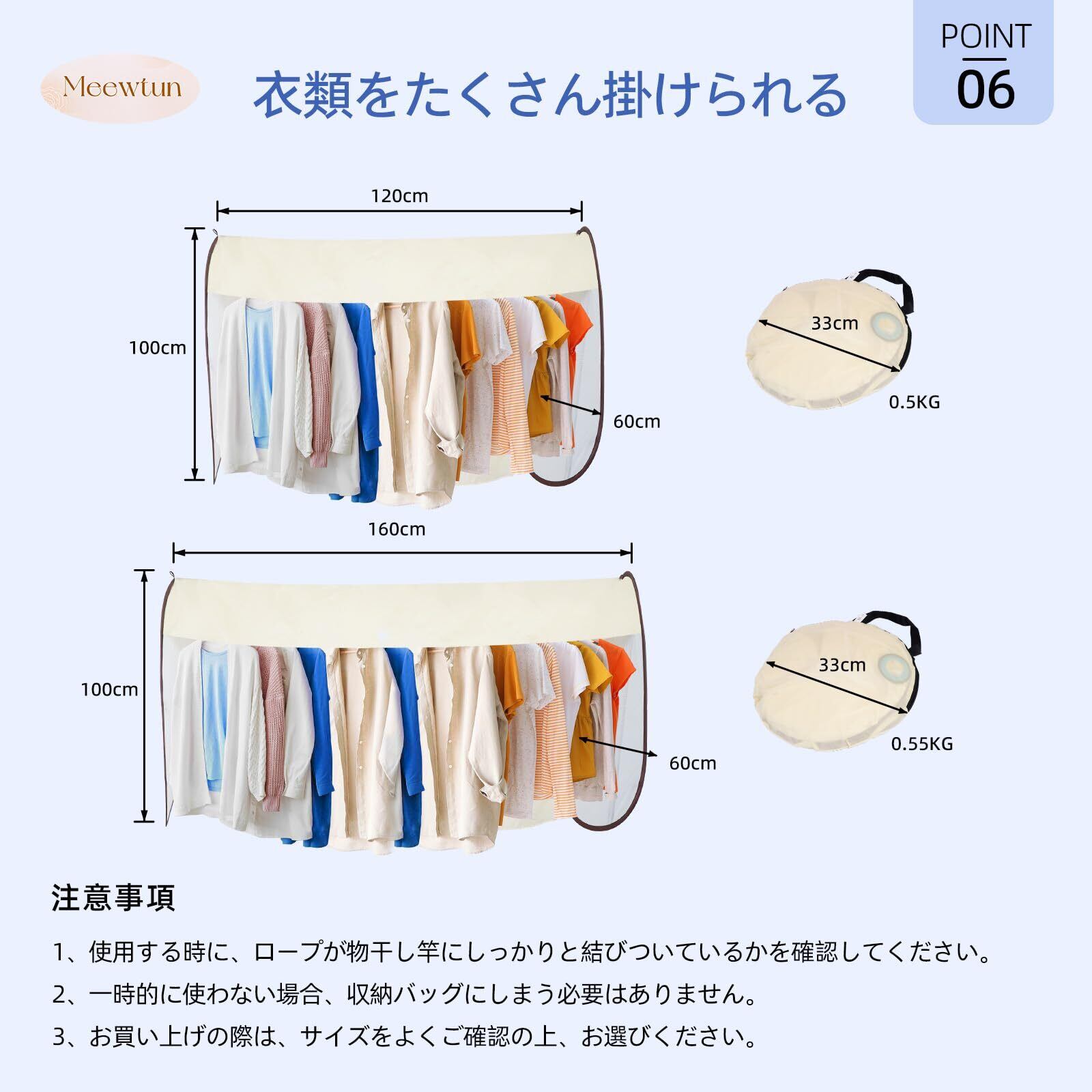 Meewtun 洗濯物カバー 雨よけカバー 目隠し 物干し 雨除け カバー 花粉防止 120cm・160cm・200cm 屋外 ベランダ 梅雨 強風 ほこり 鳥対策 紫外線対策 洗濯物保護 洗濯干し 陰干し 屋内 乾燥便利 晴雨兼用 (高さ100×幅160cm)