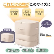 【掃除機いらずの簡単圧縮】 掃除機を使わず、一瞬で40%圧縮!クローゼットの収納力が約2倍に。さらに、従来の圧縮方法では羽毛を傷め、暖かさを失う心配がありましたが、この製品ならフカフカを守りながら収納できます。