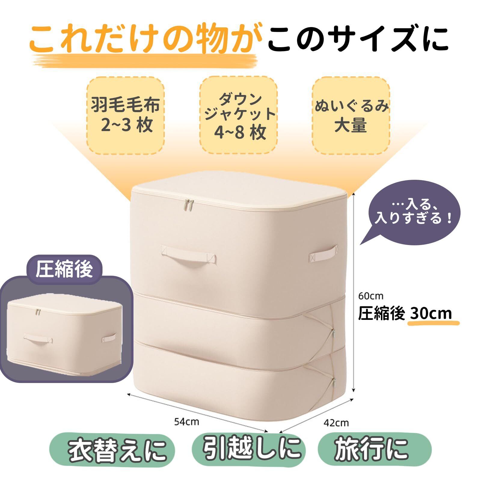 【商品仕様】 収納ボックスは布製で、54×42×60cm(圧縮前)、54×42×30cm(圧縮後)。圧縮バッグ・布団ケース・洋服収納ボックス・衣類収納ケース・收纳箱としてお使いください。