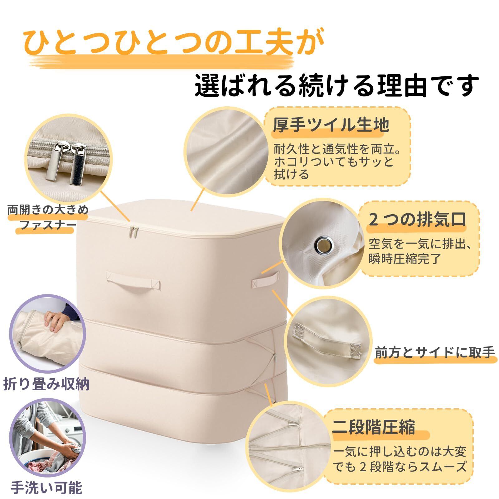 【驚きの大容量】 最大容量136L。羽毛毛布なら2〜3枚、ダウンジャケットなら4〜8枚、ぬいぐるみなら大量に収納可能です。衣類や布団をスッキリ片付けたい方に最適。