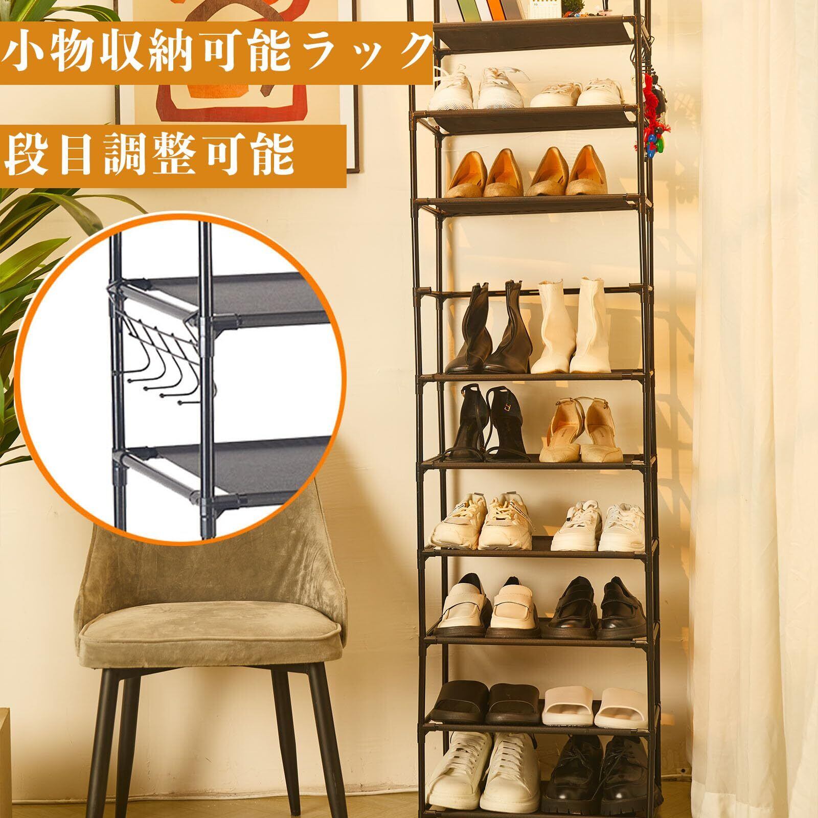 YRCBEHFU シューズラック 10段 最新防塵版 靴収納 シューズラックスリム 省スペース 進化した不織布 靴棚 寝室/玄関に靴を効率収納 靴入れ 組み立て式 幅約45×奥行28×高さ175cm(10段、ブラック) | 毎日発送✿はなまる