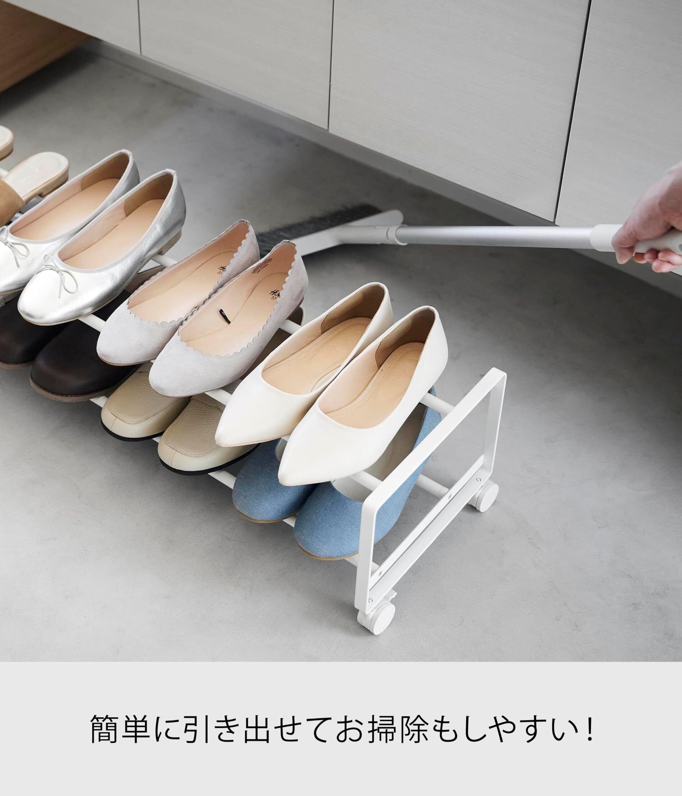 山崎実業(Yamazaki) 引き出せる キャスター付き シューズラック 2段 ホワイト W83.5×D27.5×H20.7cm(キャスター含む) タワー tower 下駄箱下 収納ワゴン 玄関収納 1624