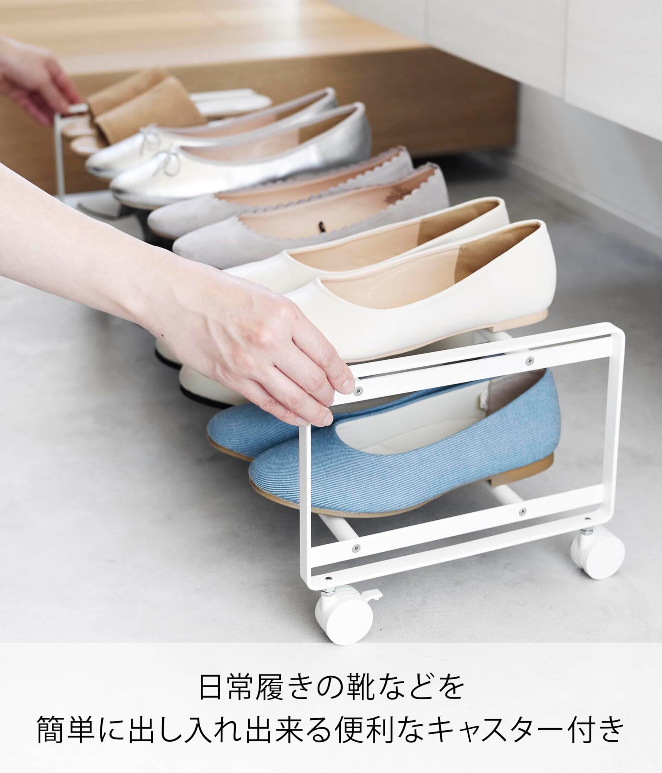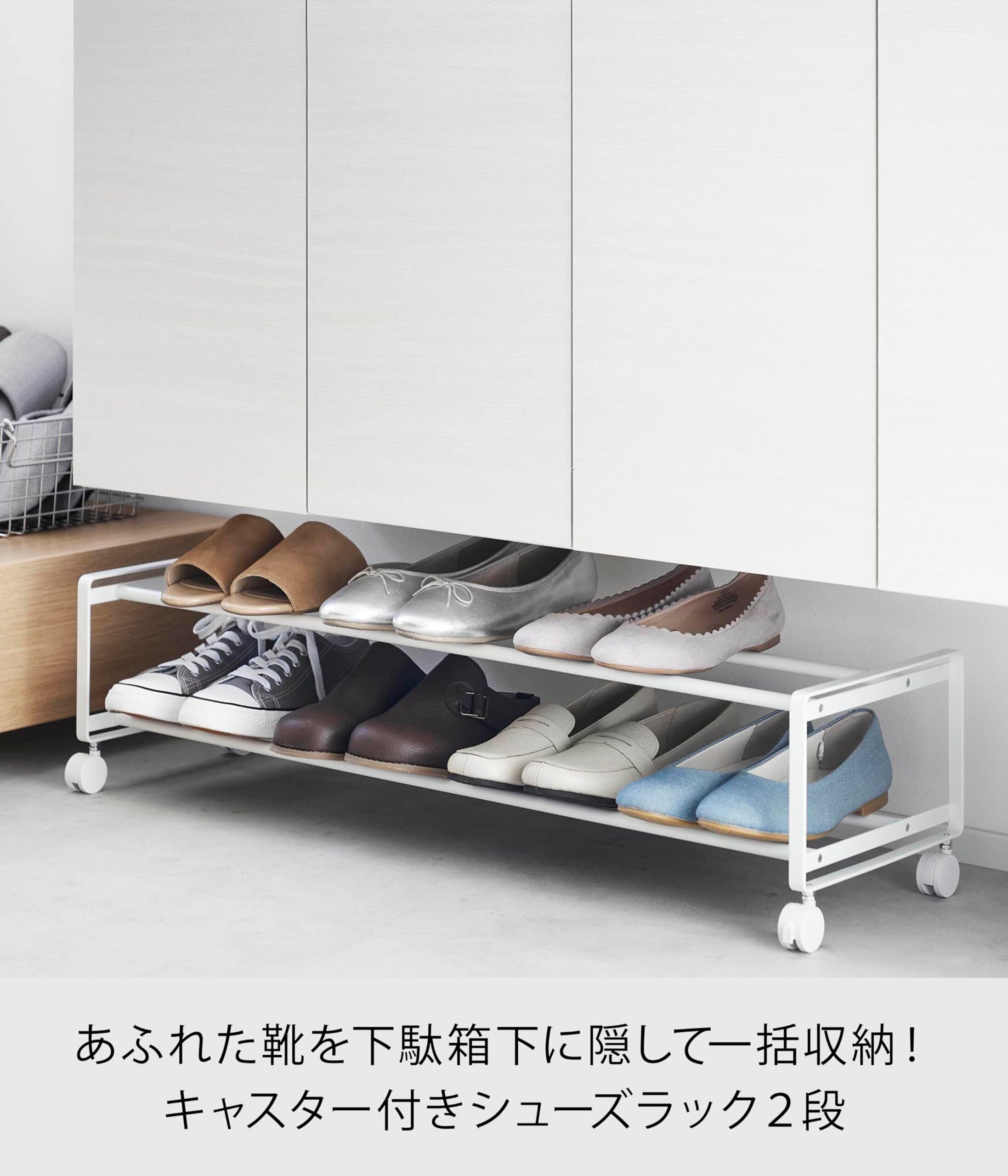 山崎実業(Yamazaki) 引き出せる キャスター付き シューズラック 2段 ホワイト W83.5×D27.5×H20.7cm(キャスター含む) タワー tower 下駄箱下 収納ワゴン 玄関収納 1624 | 毎日発送✿はなまる