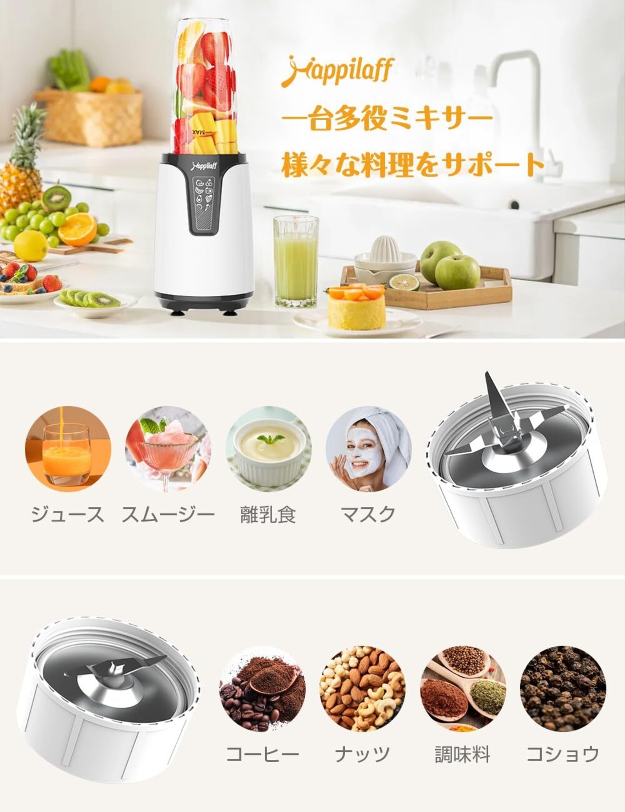 【氷も砕ける・11点セット 】ミキサー ジューサー 850W ハイパワー 670ml大容量ボドル×2 300ml研磨ボドル×1 氷も砕ける 一台多役 スムージー/野菜/果物ジュース/コーヒーミル/離乳食/介護食対応 栄養補充 お手入れ簡単 安全設計 持ち運び キッチン アウトドア 旅行 出張 プレゼントに最適 Happilaff | 毎日発送✿はなまる