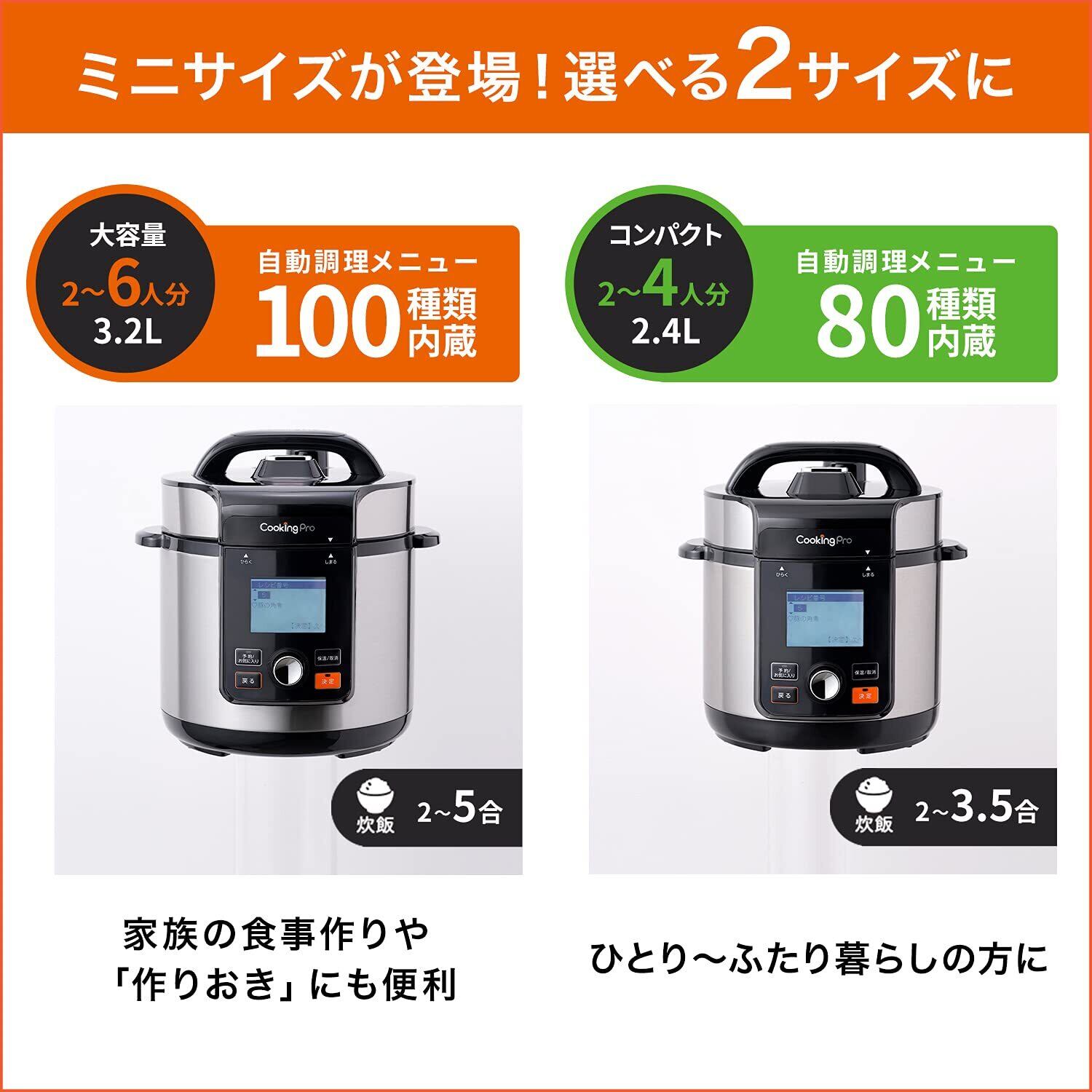 ショップジャパン クッキングプロ V2 2.4L 電気圧力鍋 幅275×高さ280×奥行274mm 80種類の自動調理メニュー内蔵 ボタンを押すだけの簡単調理 「加圧時間」「火力」「圧力調整」設定が全て自動、調整不要 大容量で作り置きにも便利 1台9役 蒸し 煮込み 無水調理 圧力調理 スロー調理 炒め クリーニングモード搭載でお手入れ簡単 12時間タイマー機能搭載 時短 【正規品】 | 毎日発送✿はなまる