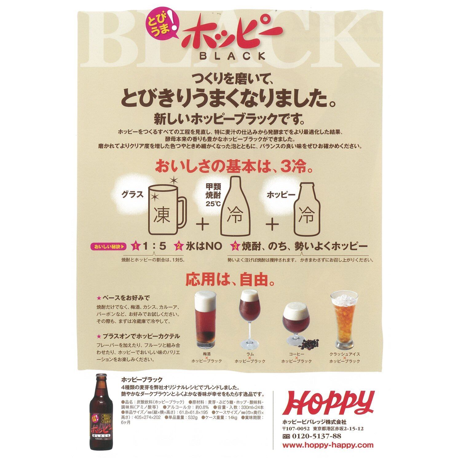 ホッピーは焼酎などと割ってお楽しみいただくミキサードリンク。スタンダードな楽しみ方は3冷です。グラス・ホッピー・焼酎(甲類25度がおすすめ)の3つをよーく冷やし、焼酎→ホッピーの順に1:5の割合で泡が立つように勢いよく注ぎます。※氷は入れない方がより美味しくお楽しみいただくことができます。焼酎の量はお好みで御調整ください。