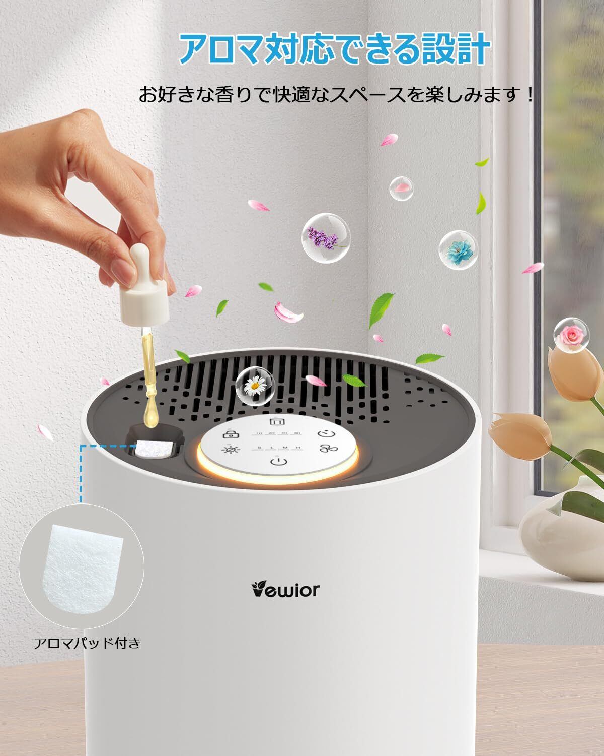 空気清浄機 小型 【2025強化版・20~40畳対応・花粉対策】VEWIOR 空気清浄機 ペット 静音 消臭 花粉対策 卓上 軽量 コンパクト 360°強力浄化 活性炭HEPAフィルター 4段階風量調節 タイマー機能 アロマ対応 ナイトライト付き チャイルドロック ほこり ハウスダスト カビ PM2.5 ペットの毛 タバコ 強力脱臭 除菌 アレルギー対策 加湿なし 節電対策 PSE&METI認証済 | 毎日発送✿はなまる