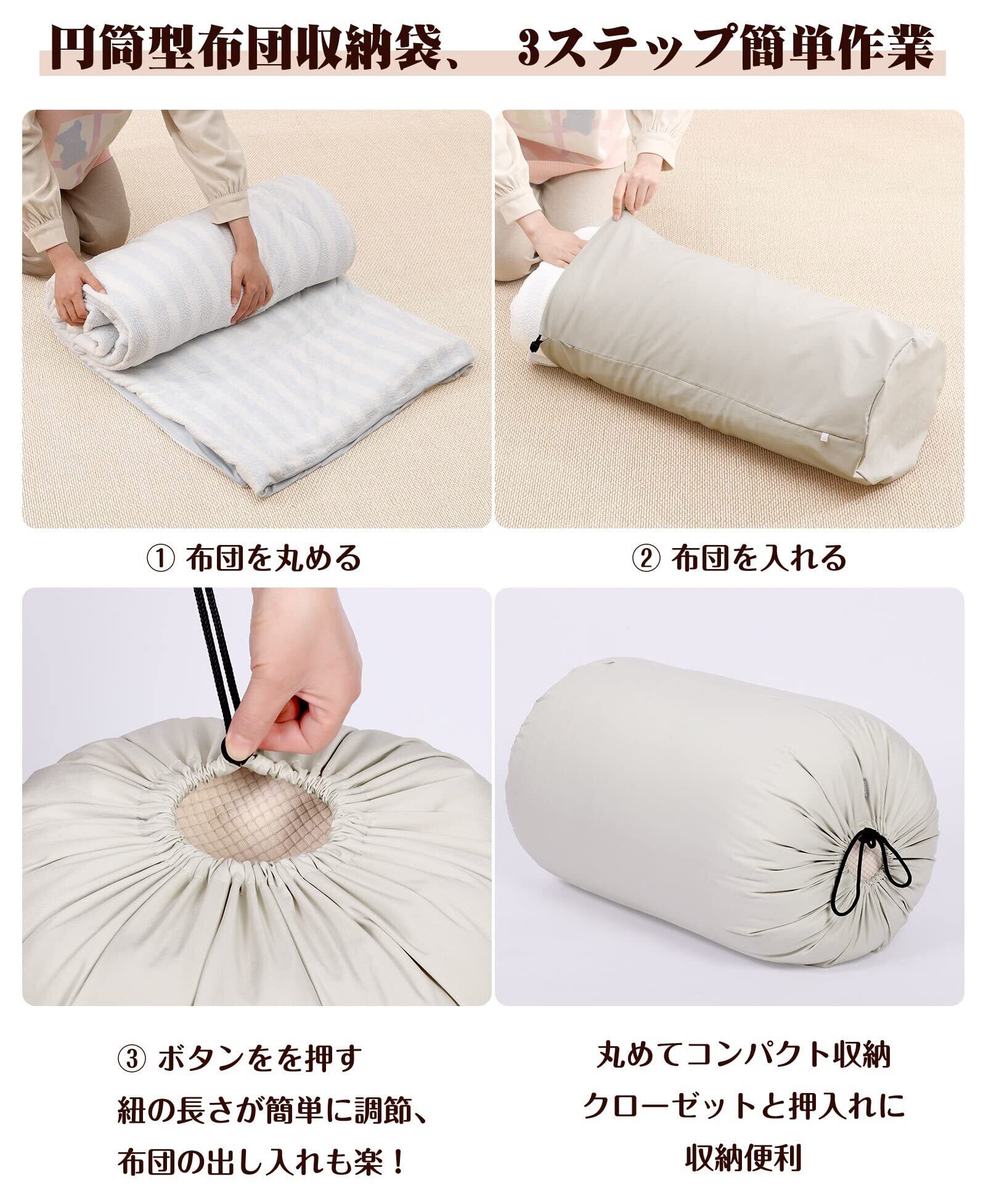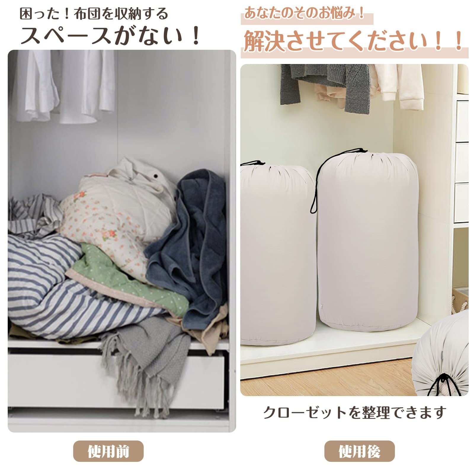 【収納しやすい】:巾着式で布団をくるくると丸めて袋に入れ、しっかりと口を縛れ、入れた布団が膨らみにくく、年配の方でも手入れが簡単です。