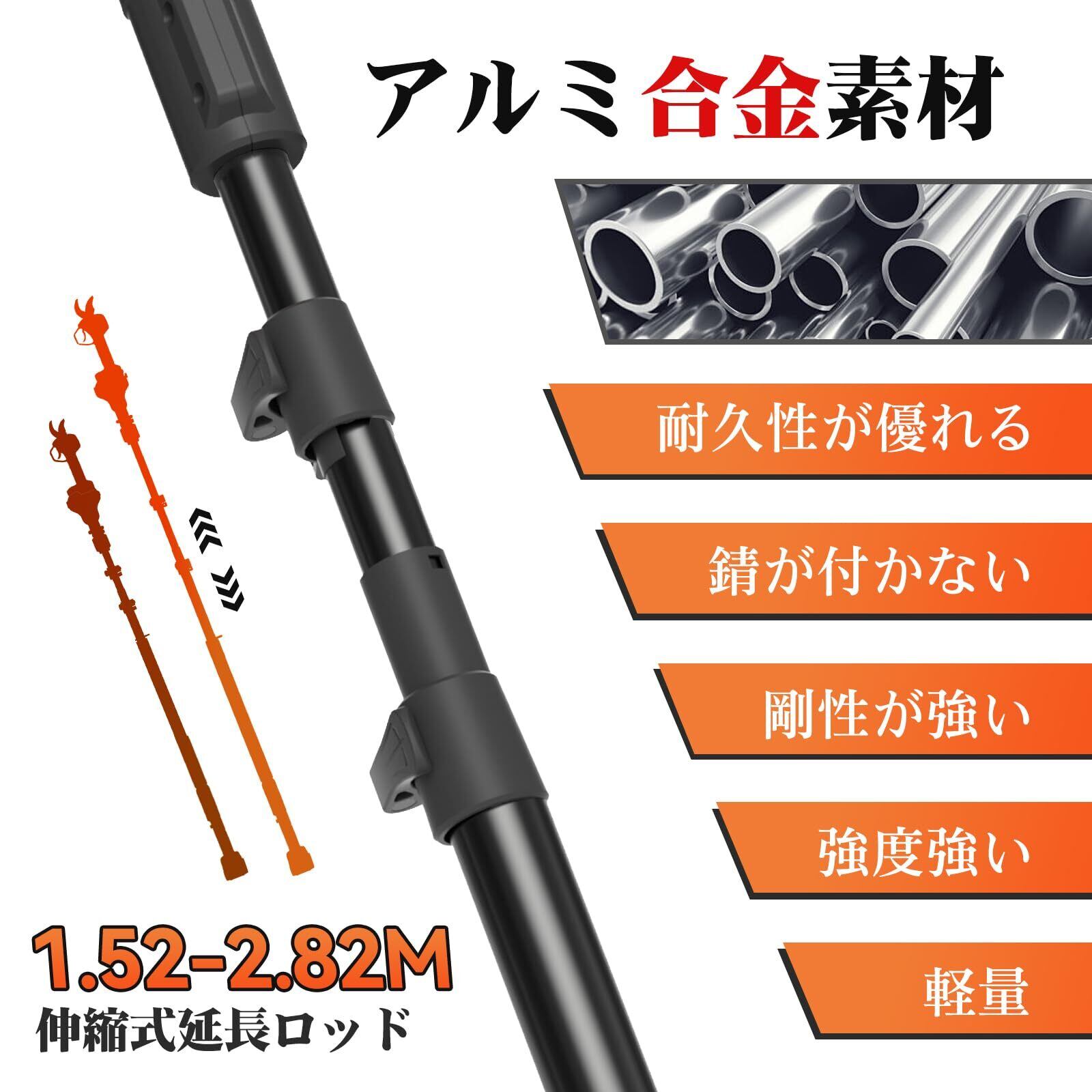 【耐久性が優れる】:電動剪定はさみの延長ポールはアルミニウム合金で作られています。丈夫で耐久性が優れています。