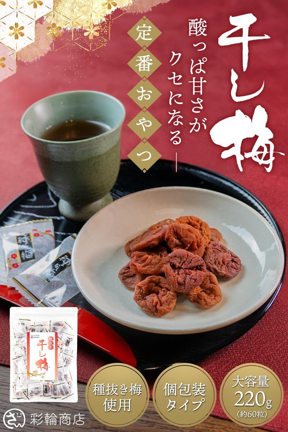 【管理栄養士監修】彩輪商店 干し梅 種なし梅 個包装 220g 約60個 干し 梅 梅干し 種なし 残留農薬検査済 うめ 梅お菓子 熱中症 対策 おやつ お菓子 (1個)