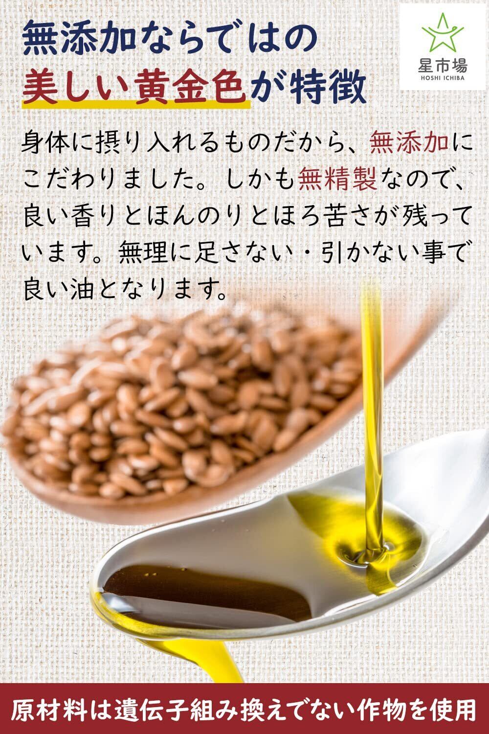 星市場 アマニ油 100g 無添加 無精製 低温圧搾 オメガ3 【管理栄養士監修】 手軽に始めるスプーン1杯の健康習慣 遮光瓶 トランス脂肪酸ゼロ 遺伝子組み換えではない (1本)