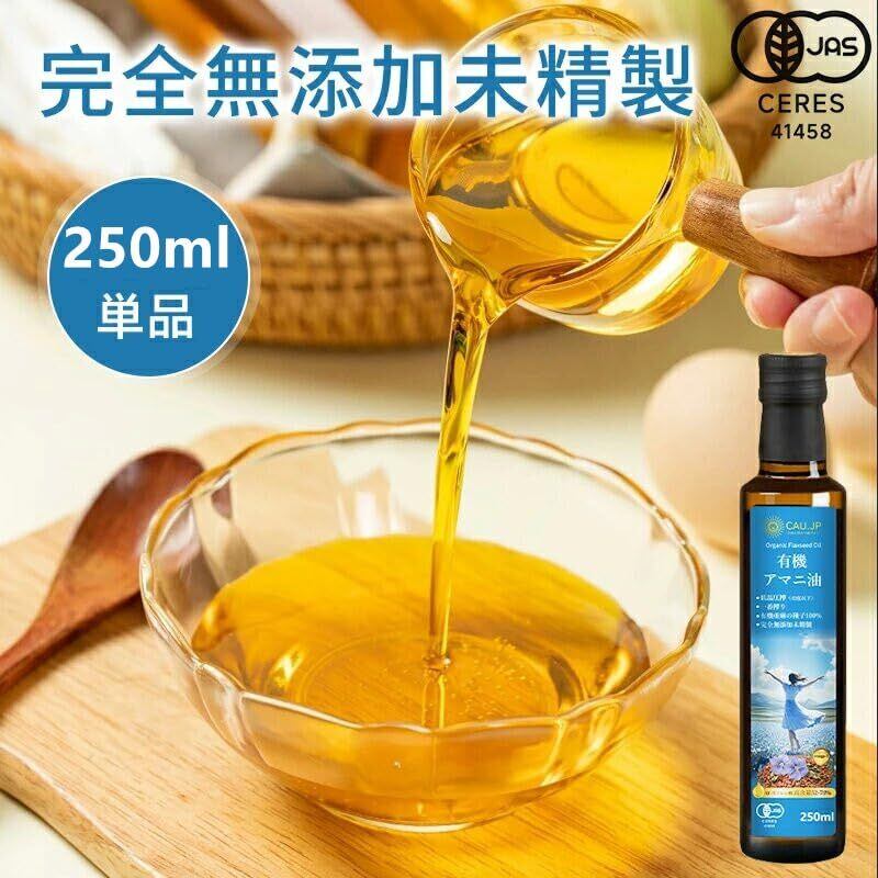 【有機JAS認証】アマニ油 250ml オーガニック 無臭 亜麻仁油 無農薬 アマニオイル 低温圧搾 無添加 オメガ3豊富なフラックスシードオイル 食用 美容 健康維持に最適