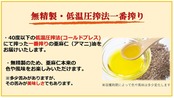 NZの豊かな大地から収穫された亜麻仁を40度以下の低温で丹念に搾った一番搾りの亜麻仁油です。