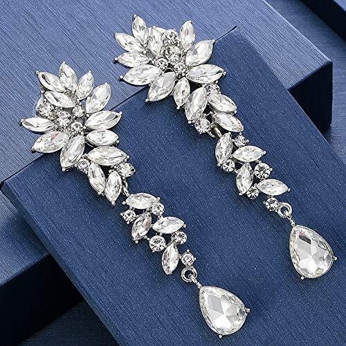 【irismile】イヤリング ラグジュアリー クリスタルパール ドロップイヤリング, ティアドロップジルコニア シルバー調 パーティー ウェディング ブライダル 舞台
